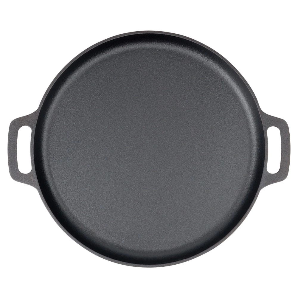- Patelnia żeliwna z uchwytami pozwoli Ci przygotować pyszne dania z mięsa, warzyw, ziemniaków a także pizzę. Posiłki można przygotowywać w piekarniku, na piecu oraz bezpośrednio na ogniu.