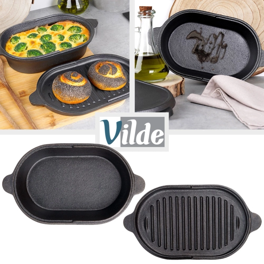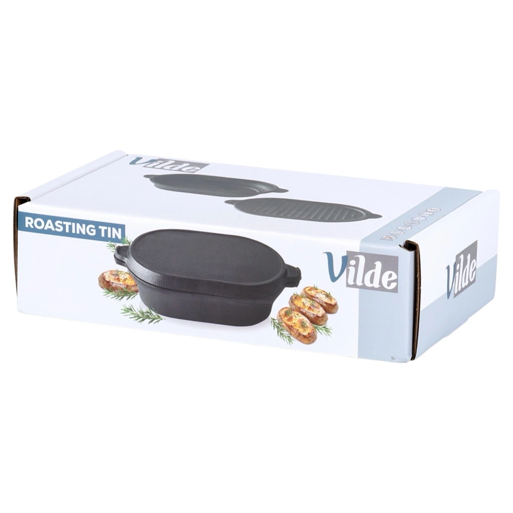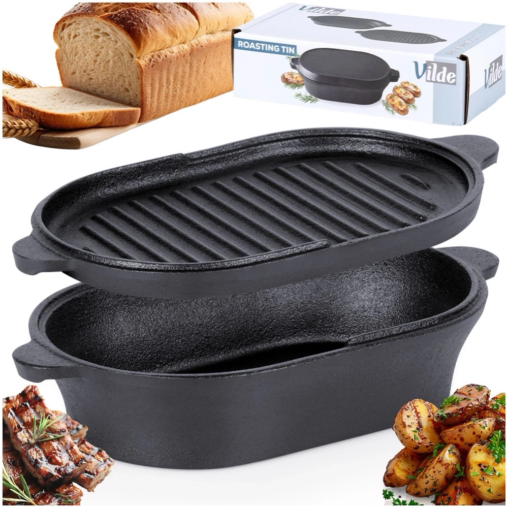 Brytfanna z pokrywką, która służy również jako osobne naczynie znajdzie szerokie zastosowanie w kuchni. Wykonana z wytrzymałych materiałów. W brytfannie przygotujemy różnego rodzaju mięsa, ryby czy warzywa. Zestaw ten jest niezwykle przydatny w każdej kuchni. UWAGA! Po każdym użyciu umyć, wytrzeć suchą szmatką do sucha i natłuścić - w przeciwnym razie na naczyniu pojawi się rdza, co jest naturalnym procesem dla tego typu materiału. Naczynie nie posiada żadnych powłok typu "teflon". Regularna pielęgnacja zapobiega korozji i zapewnia długotrwałe użytkowanie naczynia. Oryginalny produkt marki Vilde z linii Cast Line. Wyprodukowano zgodnie z europejskimi standardami.