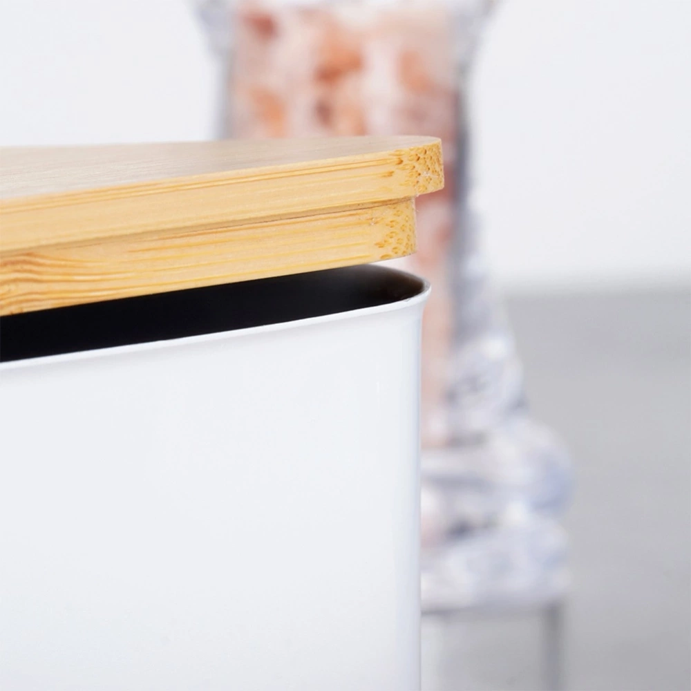 - Stalowa w kolorze białym z bambusową pokrywką - Wykonana z najwyższej jakości stali węglowej malowanej proszkowo na biały kolor. Prezentuje się bardzo elegancko, dzięki bambusowej pokrywce.