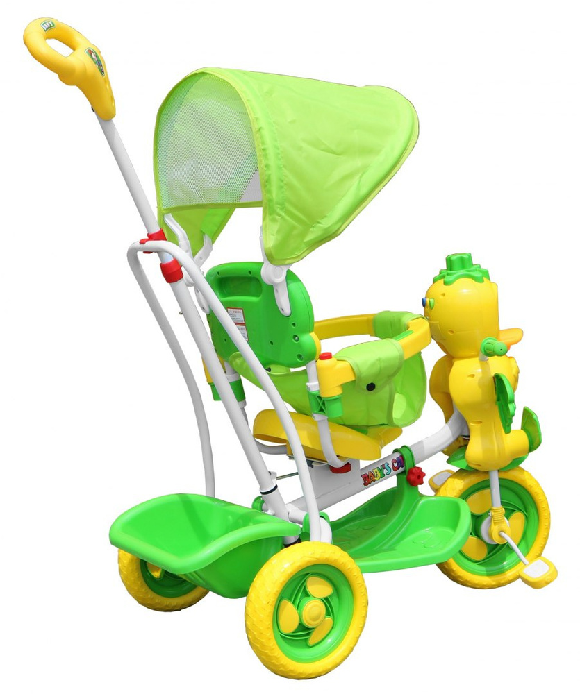 3-kołowy Rowerek dla dzieci Kaczka Zielony + Dźwięki + Daszek + Barierka + Podnóżek + Rączka + Schowek