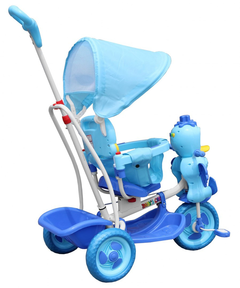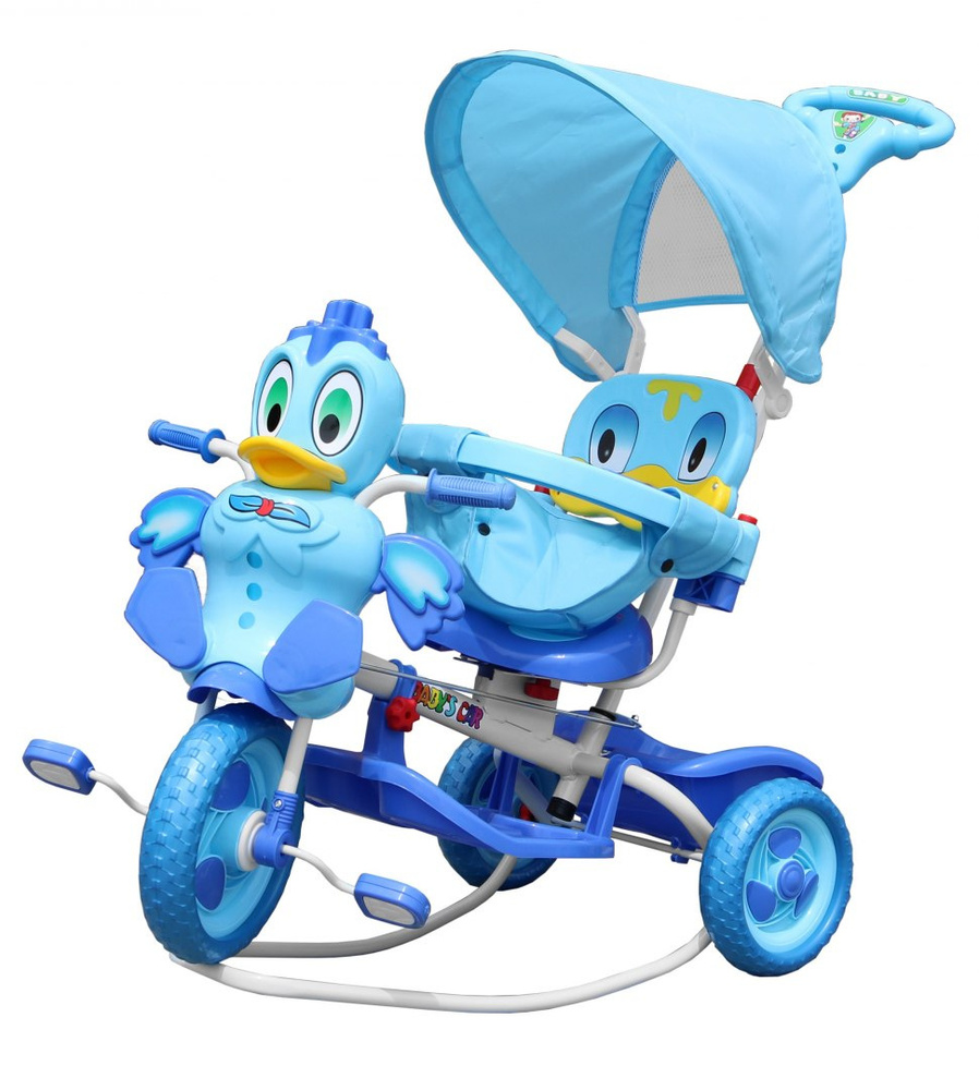 3-kołowy Rowerek dla dzieci Kaczka Niebieski + Dźwięki + Daszek + Barierka + Podnóżek + Rączka + Schowek
