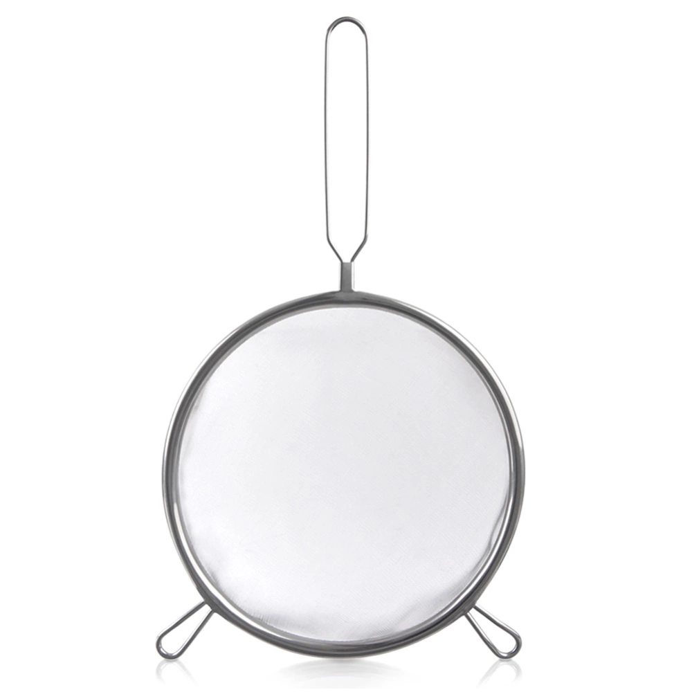 - Duże sitko kuchenne o średnicy 24,5 cm z uchwytem. Wykonane ze stali nierdzewnej. Doskonale nadaje się do odcedzania makaronu i warzyw, a także przesiewania produktów.