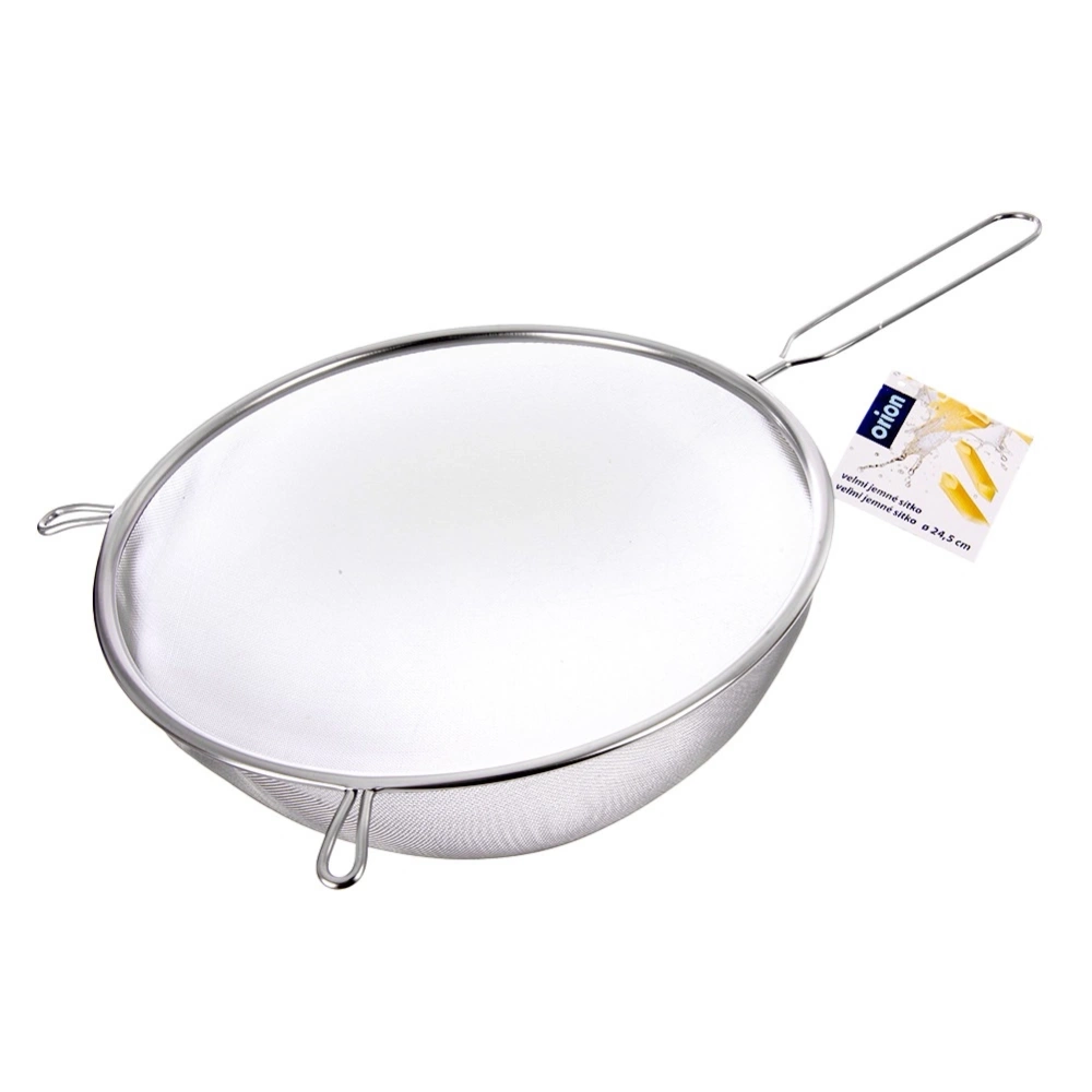 - Sitko kuchenne o średnicy 24,5 cm - Duże sitko jest bardzo przydatne w każdej kuchni, model ten posiada bardzo gęstą, cienko tkaną siateczkę, która skutecznie zatrzymuje nawet najdrobniejsze cząsteczki. Wymiar zewnętrzny sitka 39,5 x 24,5 x 7 cm.
