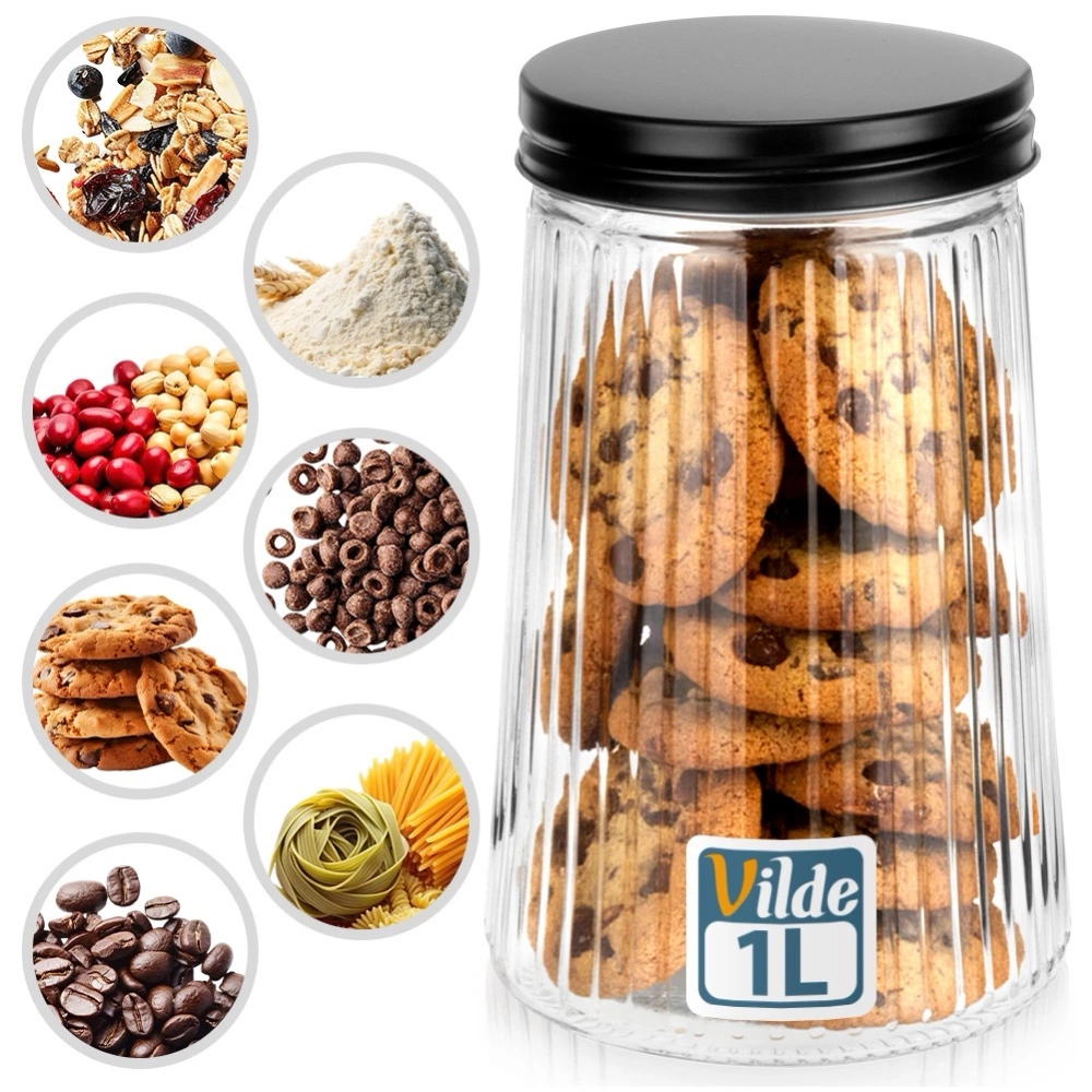 Pojemnik do przechowywania żywności z metalową pokrywką. Nadaje się do przechowywania różnych produktów spożywczych. Znajdzie wiele zastosowań w kuchni. Szczelna pokrywka sprawia, że przechowywane produkty dłużej zachowują świeżość. Przezroczyste szkło pozwoli nam w łatwy sposób sprawdzić zawartość pojemnika i w efektowny sposób wyeksponować ją. Przechowywanie produktów w pojemniku pozwoli na uporządkowanie przestrzeni kuchennej. Oryginalny produkt marki Vilde. Wyprodukowano zgodnie z europejskimi standardami.