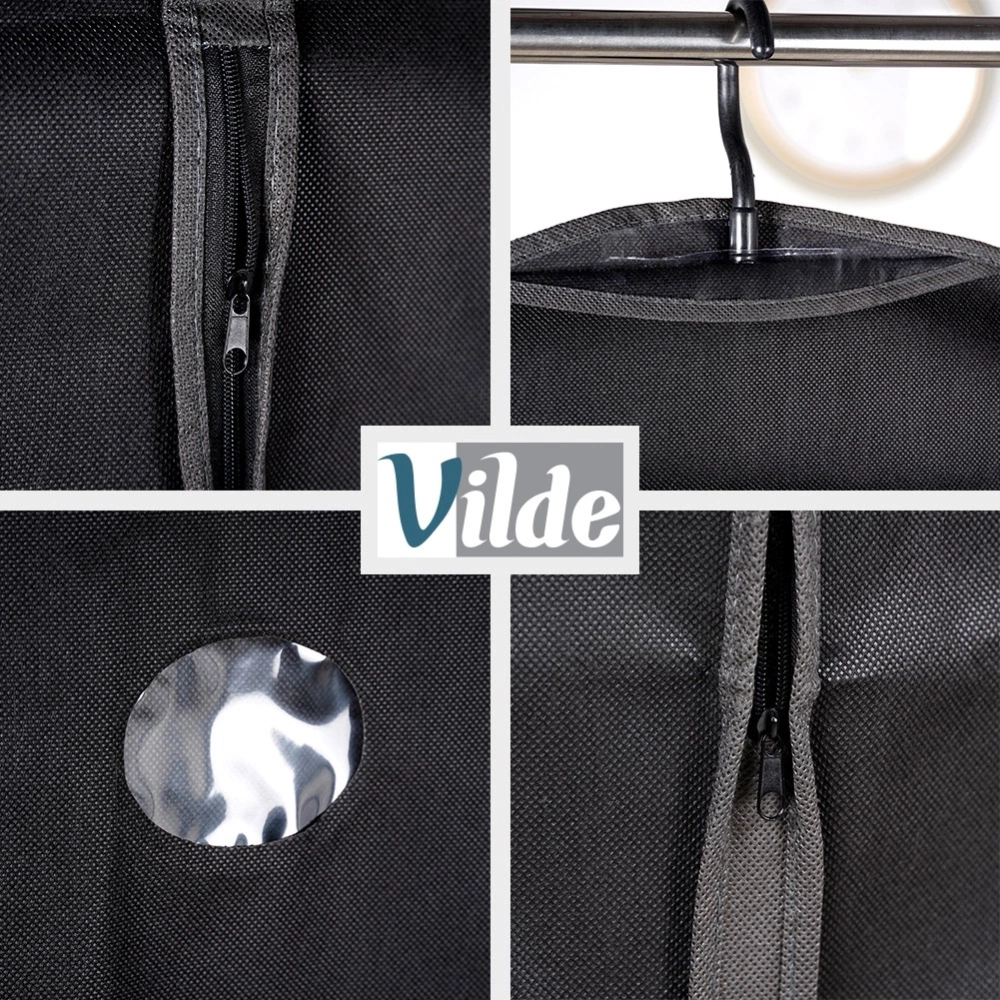 Komplet dwóch pokrowców na ubrania to praktyczne rozwiązanie do uporządkowanego i bezpiecznego przechowywania garderoby. Pokrowce zabezpieczają odzież przed kurzem i wilgocią, jednocześnie zapobiegając jej gnieceniu. Funkcjonalny i solidny materiał zapewnia komfort użytkowania. Oryginalny produkt marki Vilde. Wyprodukowano zgodnie z europejskimi standardami.
