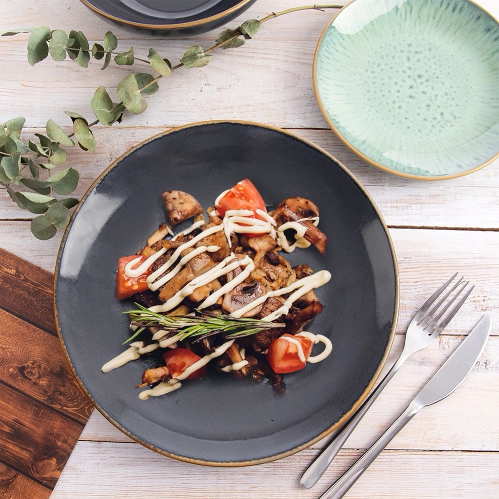 - Efektowny design - Utrzymany w modnej kolorystyce, która pięknie prezentuje się na stole wraz z inną zastawą. Talerz posiada klasyczny, okrągły kształt.