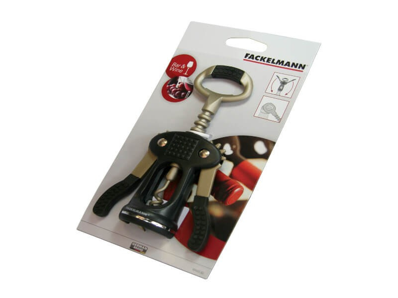 Korkociąg z dźwignią niemieckiej firmy Fackelmann został wykonany z trwałej stali oraz antypoślizgowej powierzchni na uchwytach.