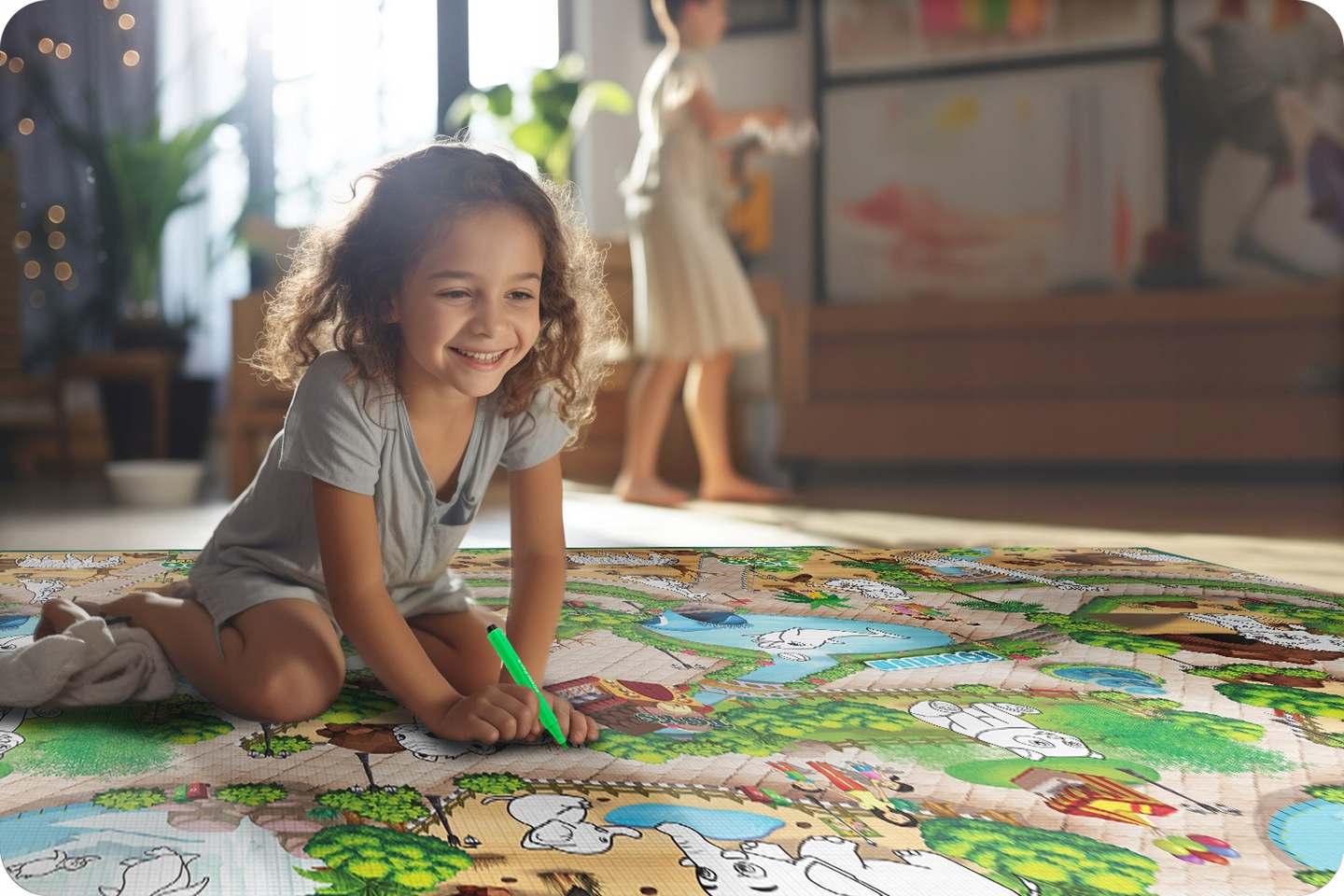 - Duża mata XXL do kolorowania 200x120 cm z mazakami GRATIS! Miękka, zmywalna i bezpieczna pianka EVA. Idealna do rysowania, nauki raczkowania i zabawy. Wodoodporna, rolowana i łatwa w czyszczeniu – jakość premium dla dzieci.