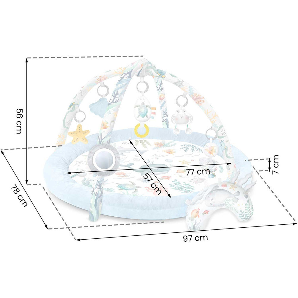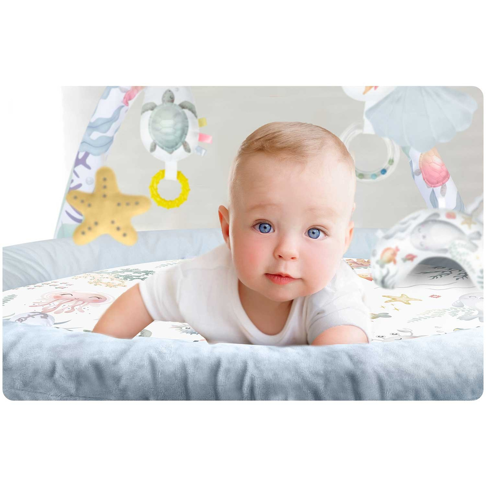 - Przemyślany design - kolorowy, podwodny motyw zachęca do aktywności oraz eksploracji dla małych odkrywców, co stymuluje ich wyobraźnię.