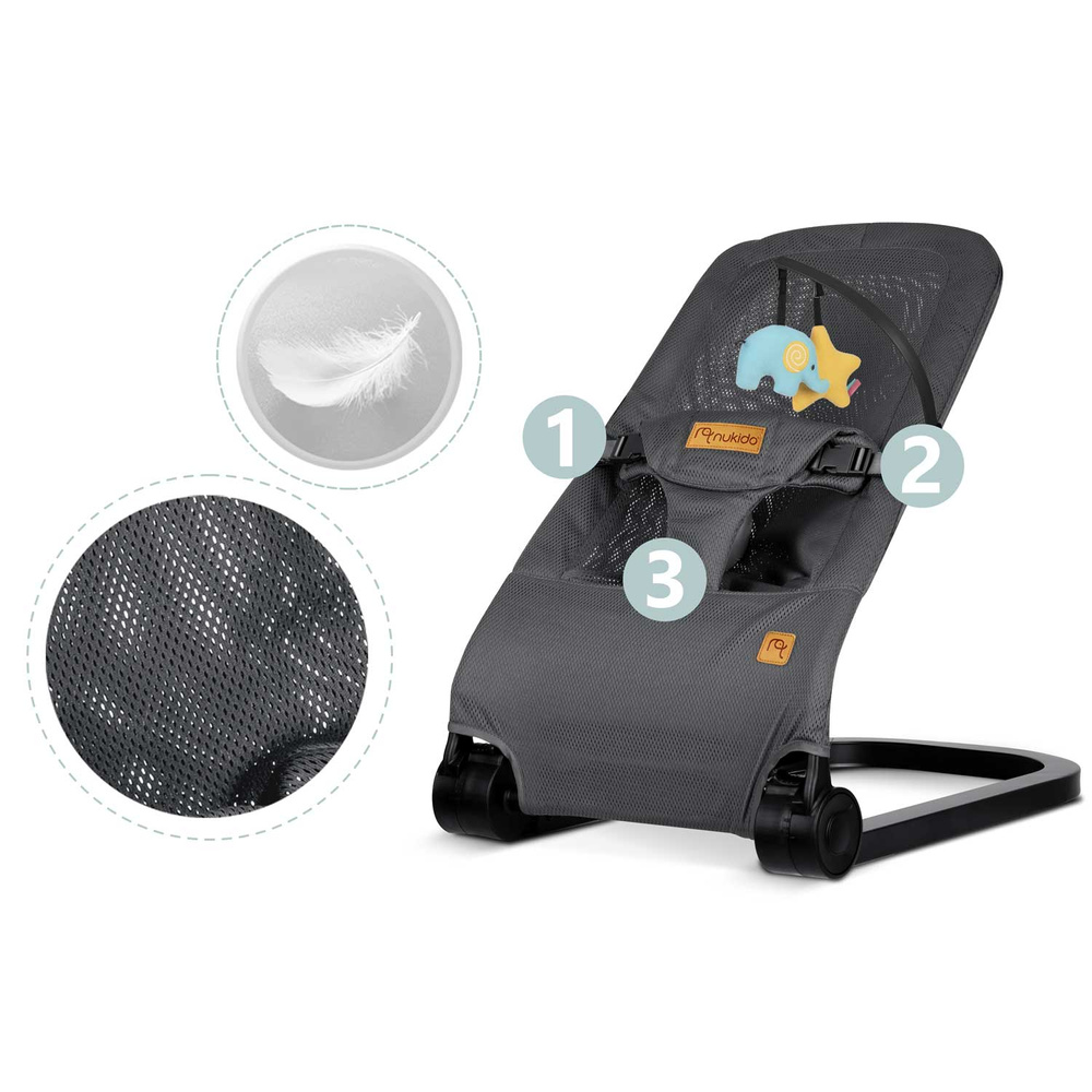 - ODDYCHAJĄCY materiał zewnętrzny leżaczka wykonany jest z miękkiej, przyjemnej w dotyku i przewiewnej tkaniny, dzięki czemu zapewnisz wygodę dla maluszka nawet w najcieplejsze dni.