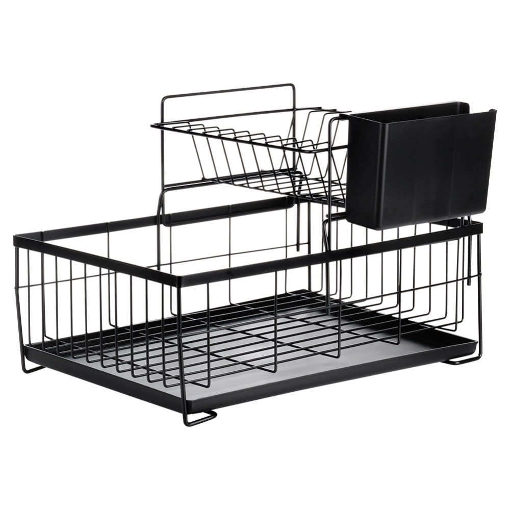 - Elegancka, dwupoziomowa suszarka do naczyń w kolorze czarnym. Posiada miejsce na talerze, szklanki oraz ociekacz na sztućce. Wyposażona w wyjmowaną tacę ociekową.