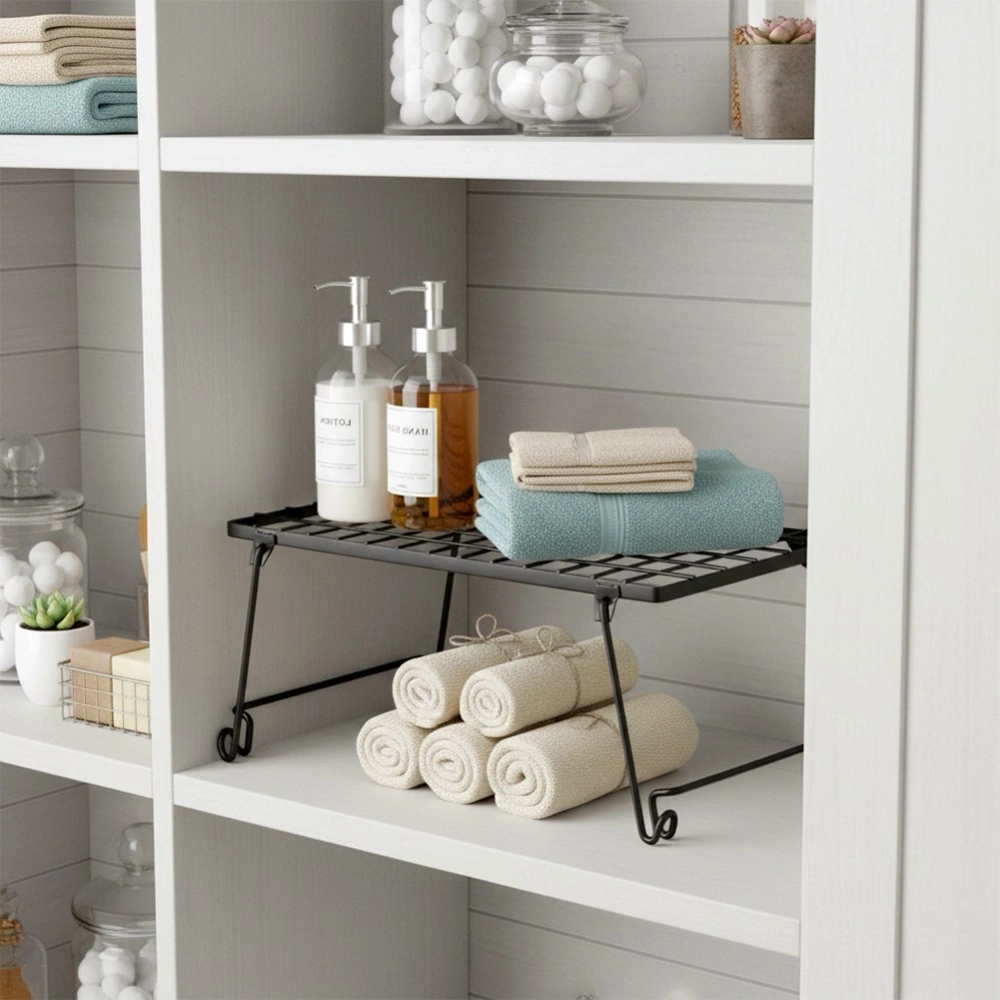 - Solidnie wykonana i stabilna - Wykonana z najwyższej jakości metalu w czarnym kolorze. Półka jest wytrzymała i stabilna. To praktyczne rozwiązanie pozwala dopasować ją do różnych przestrzeni - w szafkach, na blacie czy w spiżarni.