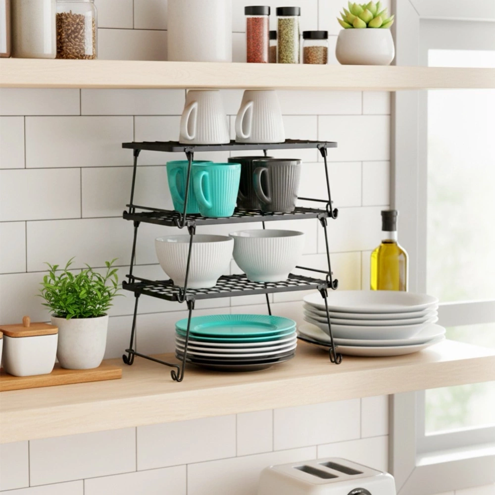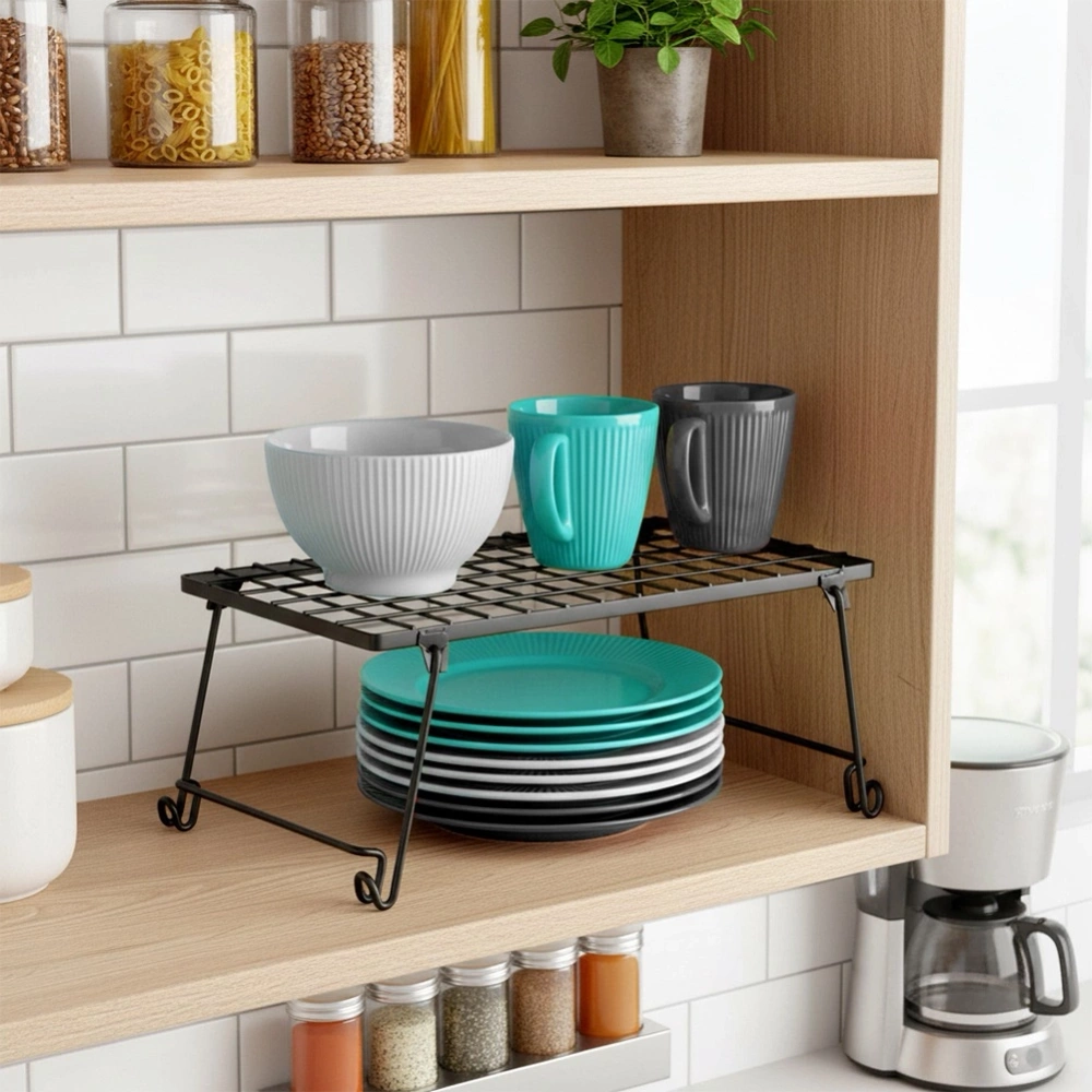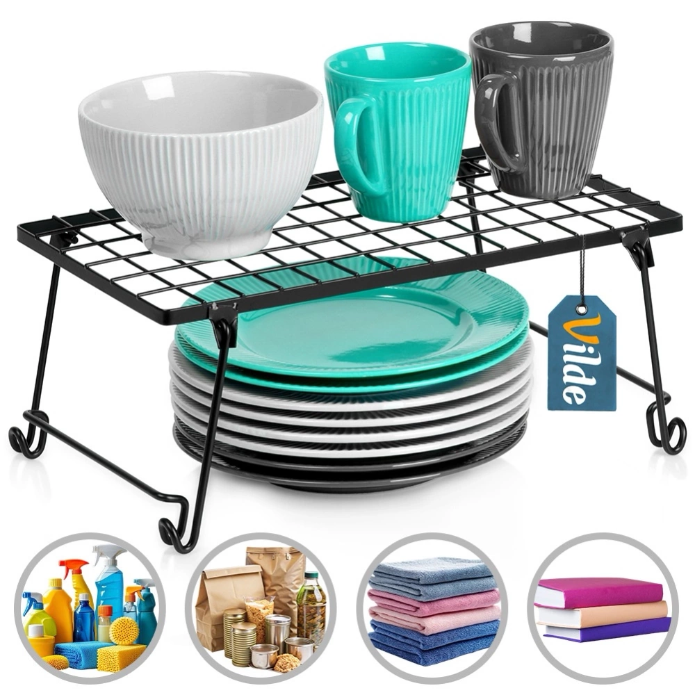 - Półka kuchenna idealna do organizacji przestrzeni w szafkach, na blacie lub w spiżarni. Pozwala podzielić wnętrze szafki na dwa poziomy lub stworzyć dodatkowe miejsce do przechowywania na blacie.