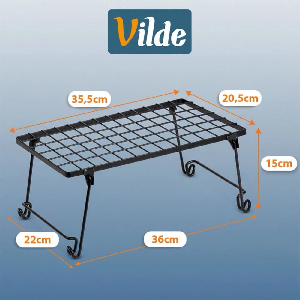 Praktyczna półka idealna do uporządkowania przestrzeni w kuchni. Półka dzieli blat lub szafkę na dwie części, dzięki czemu zyskamy dodatkową przestrzeń do przechowywania akcesoriów kuchennych. Półka jest niezwykle uniwersalna. Idealne rozwiązanie dla tych, którzy chcą efektywnie wykorzystać dostępną przestrzeń w szafkach lub na blacie. Oryginalny produkt marki Vilde. Wyprodukowano zgodnie z europejskimi standardami.