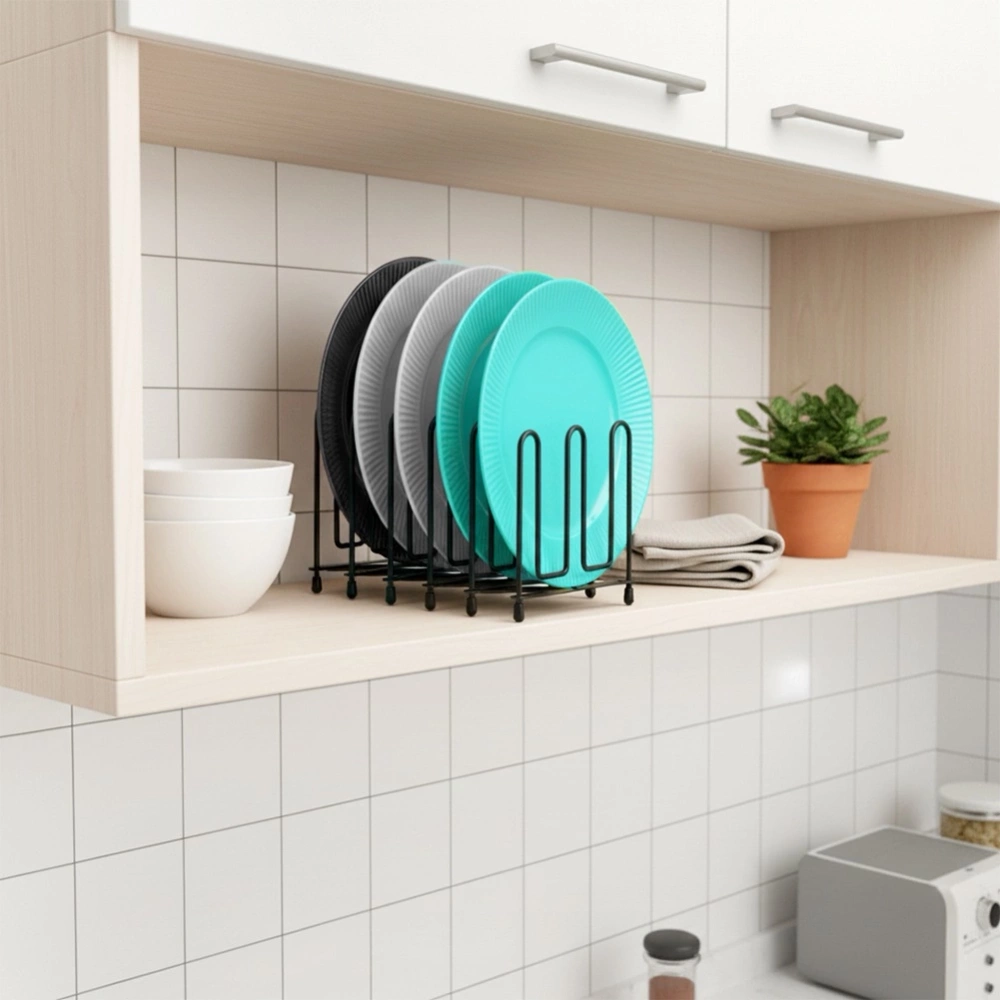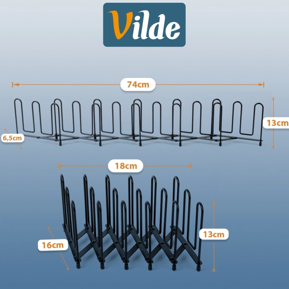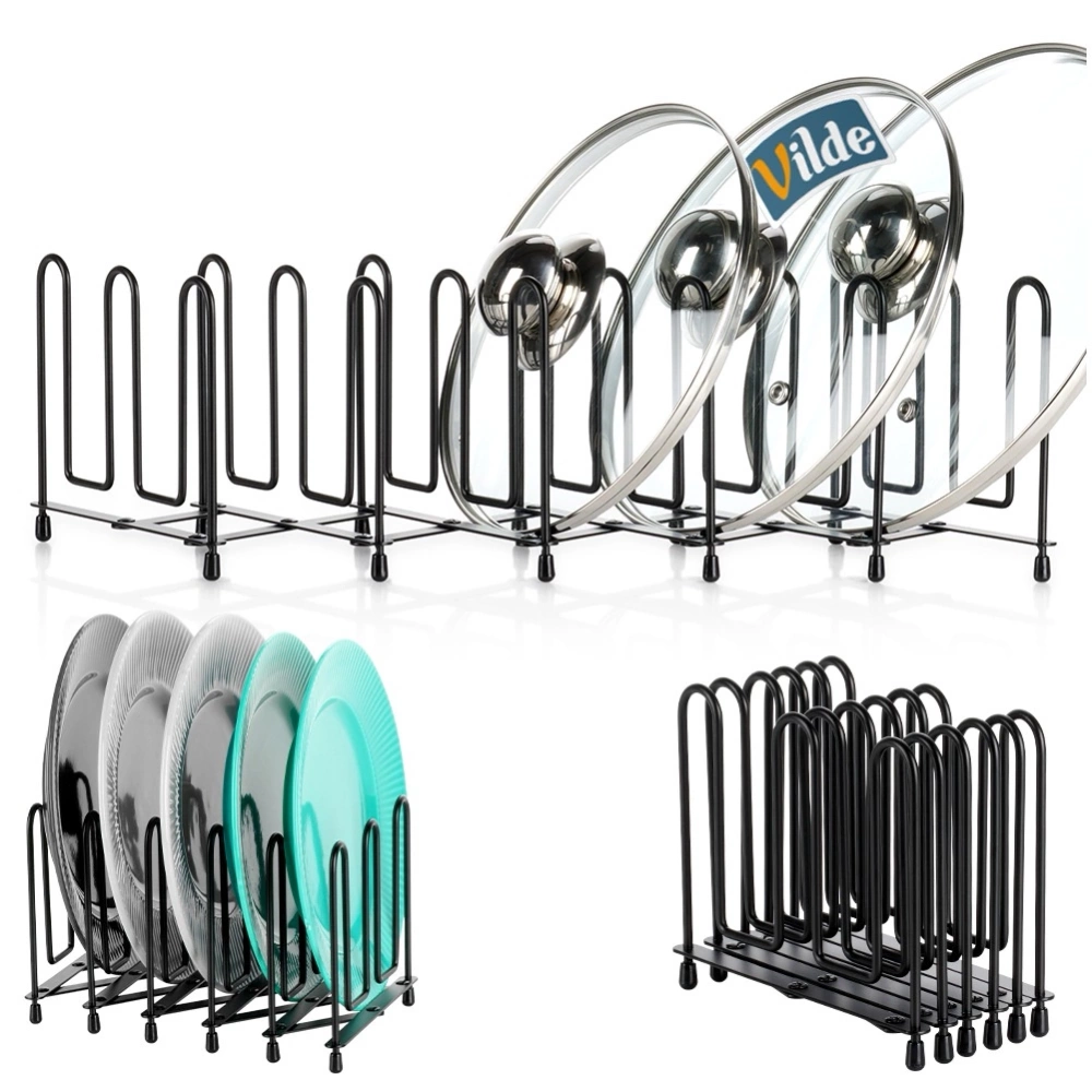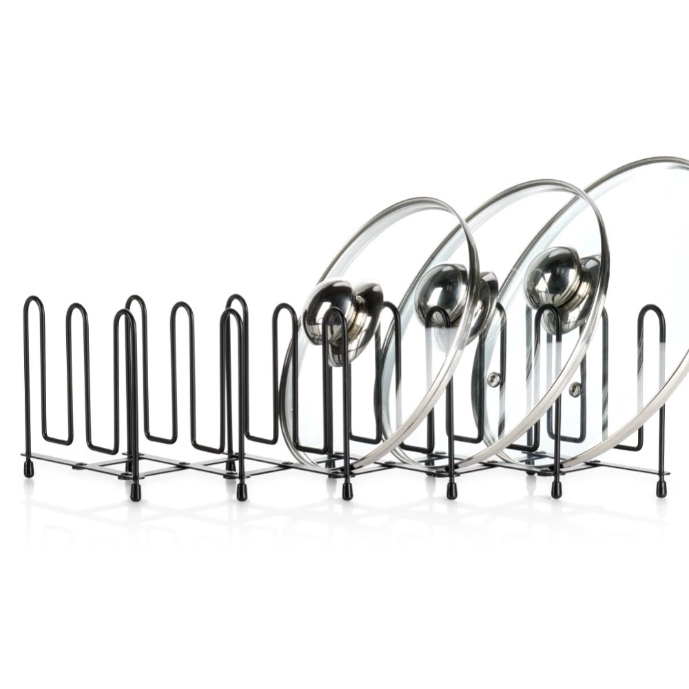 - Stojak na pokrywki i talerze - Przydatny w każdej kuchni stojak na pokrywki i talerze o wymiarach cm. Organizer pomieści 5 talerzy, desek lub pokrywek. Z jego pomocą wyeksponujemy ulubione talerze oraz zachowamy porządek podczas przechowywania pokrywek. Zapobiega uszkodzeniom pokrywek. Stojak ma wymiary po maksymalnym rozłożeniu 74 x 16 x 13 cm
