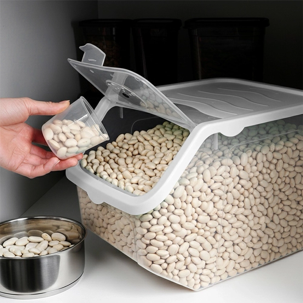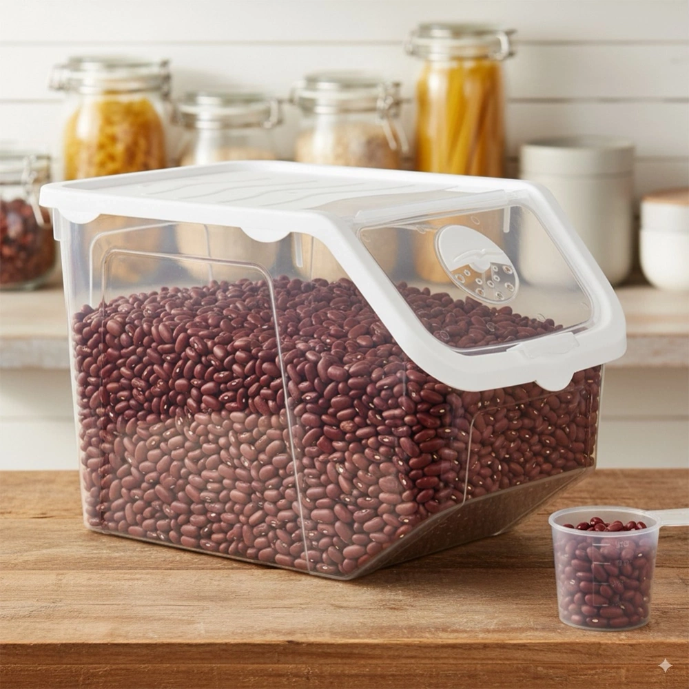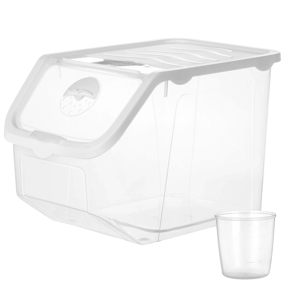 - Praktyczny pojemnik na różnego rodzaju produkty, owoce, warzywa. Pokrywka zamykana na klips, posiada regulacje wentylacji. W zestawie praktyczna miarka.