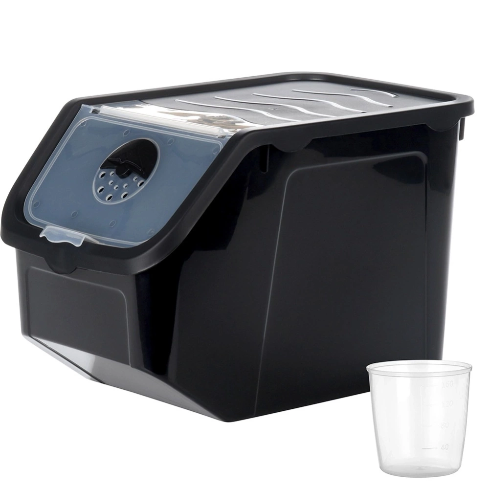 - Praktyczny pojemnik do przechowywania - Praktyczny pojemnik do przechowywania warzyw i owoców. Świetnie sprawdzi się na cebulę, ziemniaki, czosnek, ale również na karmę dla zwierząt czy proszek. W zestawie z miarką. Pojemnik ma wymiary 34 x 23 x 23 cm i pojemność 12 l.