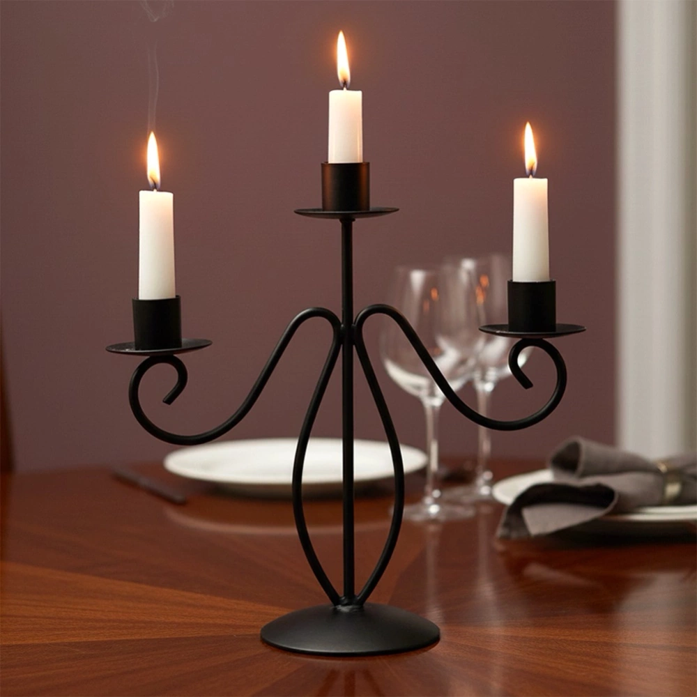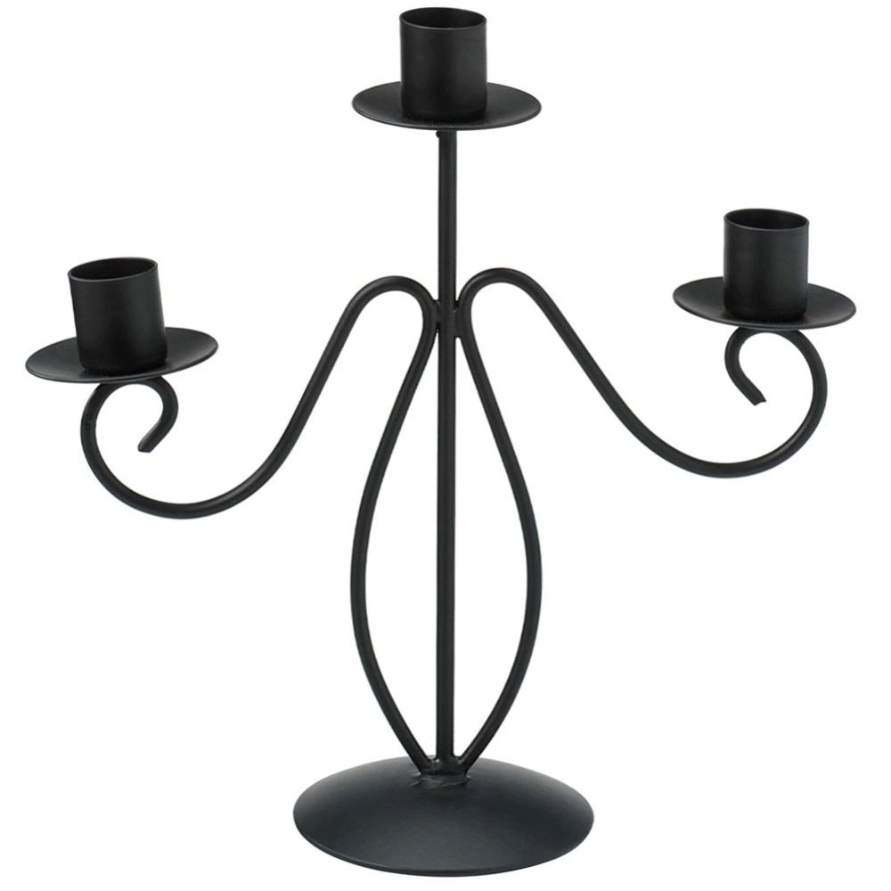 - Nowoczesny, trzyramienny kandelabr o wysokości 23 cm, przeznaczony na długie świece stołowe. Wykonany z metalu w czarnym kolorze.