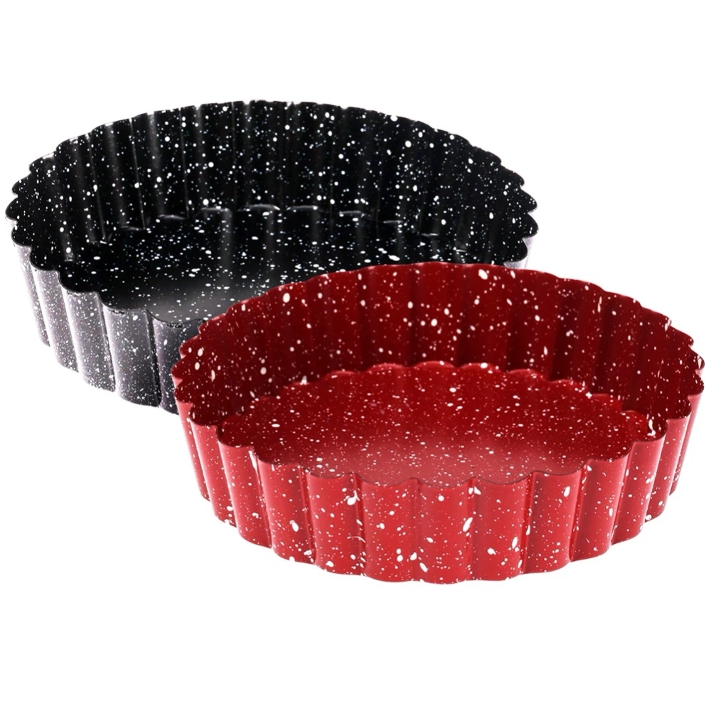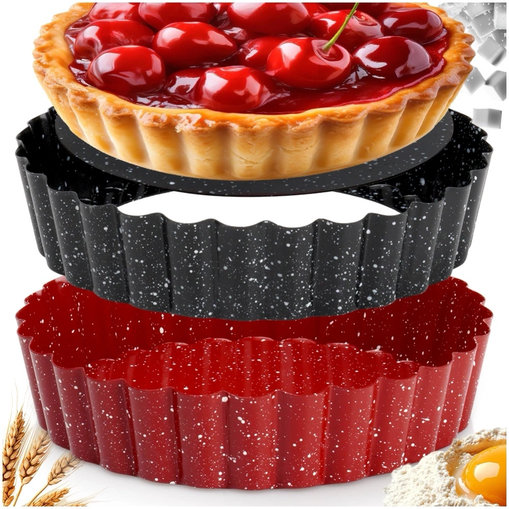 - Zestaw dwóch form do tarty z wyjmowanym dnem. Wykonane ze stali węglowej z powłoką nieprzywierającą. Idealne do wypieku słodkich tartaletek i wytrawnych quiche.