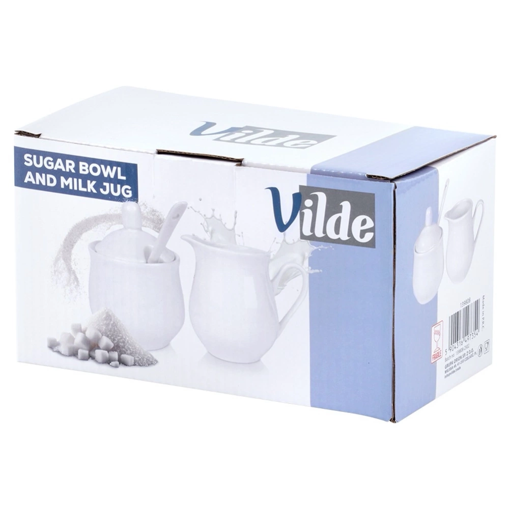 Idealny zestaw do serwowania mleka, śmietanki oraz cukru. Sprawdzą się zarówno w domu, jak i w gastronomii. Posiada modny, biały kolor i pięknie prezentuje się na stole. Idealnie komponują się z inną zastawą stołową. W naszej ofercie znajdują się również inne elementy z tej serii. Oryginalny produkt marki Vilde. Wyprodukowano zgodnie z europejskimi standardami.