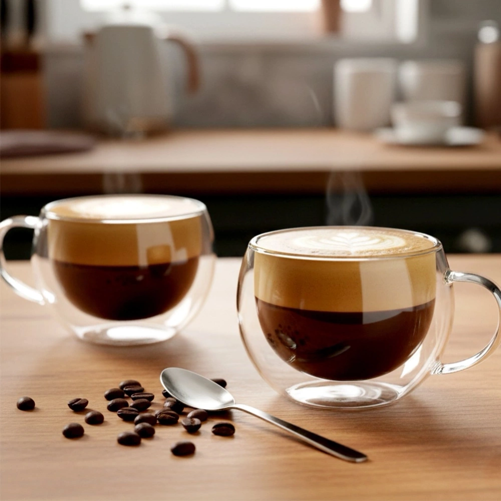 - Szklane z podwójną szklanką - Wykonane z podwójnego szkła borokrzemowego, które utrzymuje temperaturę napoju przez długi czas. Szkło jest przezroczyste. Ciepłe napoje nie schładzają się szybko, a napoje zimne, pozostają dłużej chłodne.