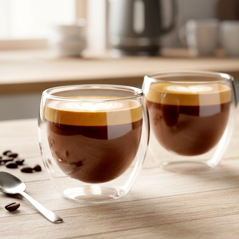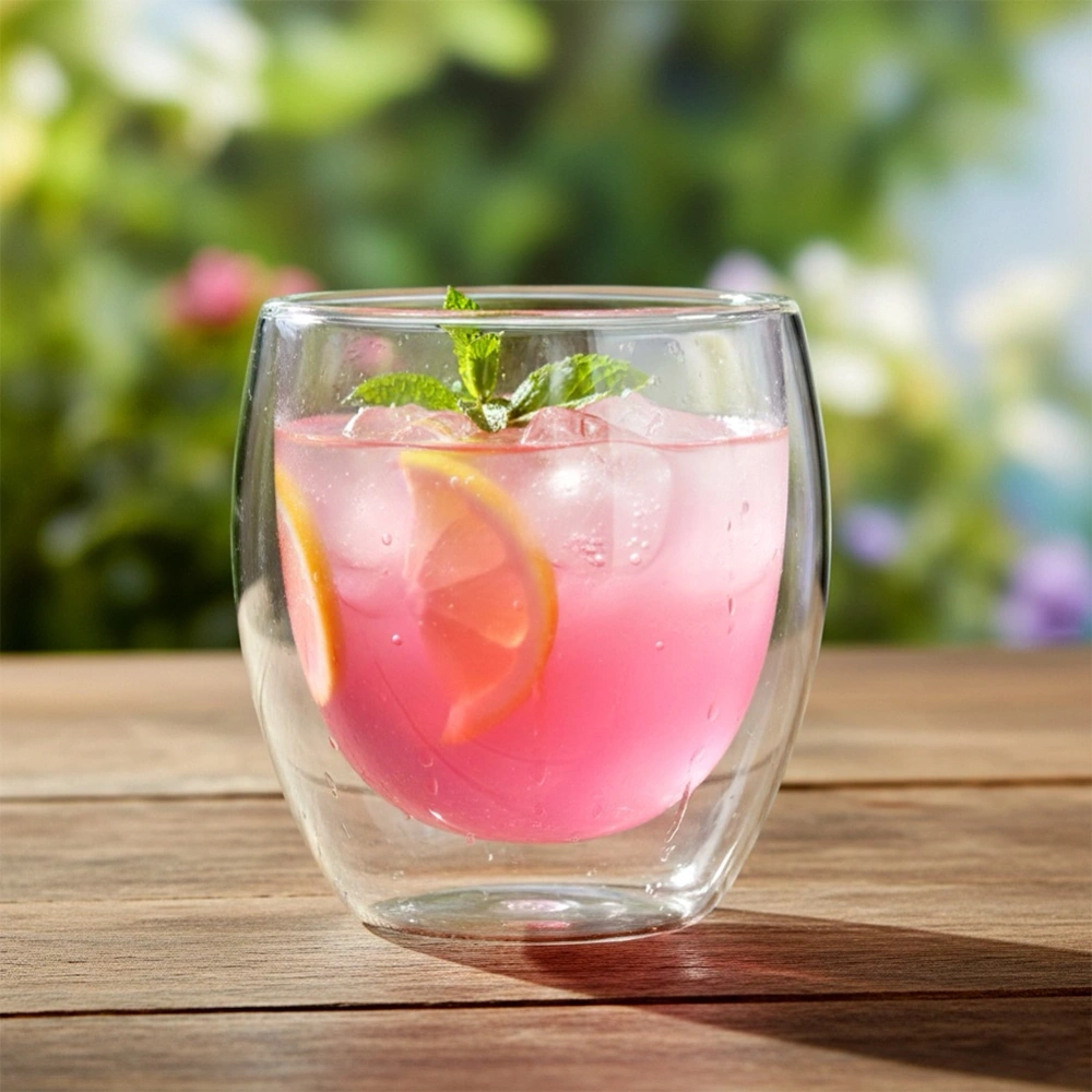 - Szklane z podwójną szklanką - Wykonane z podwójnego szkła borokrzemowego, które utrzymuje temperaturę napoju przez długi czas. Szkło jest przezroczyste. Ciepłe napoje nie schładzają się szybko, a napoje zimne, pozostają dłużej chłodne.