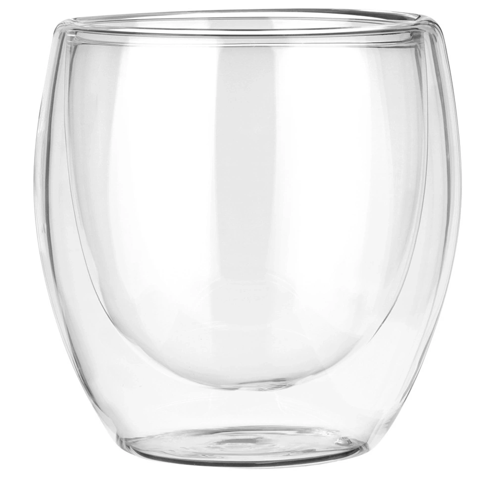 - Zestaw dwóch szklanek termicznych z podwójną ścianką, o pojemności 280 ml. Świetnie sprawdzą się do picia kawy lub herbaty. Serwowane w nich napoje prezentują się bardzo efektownie.