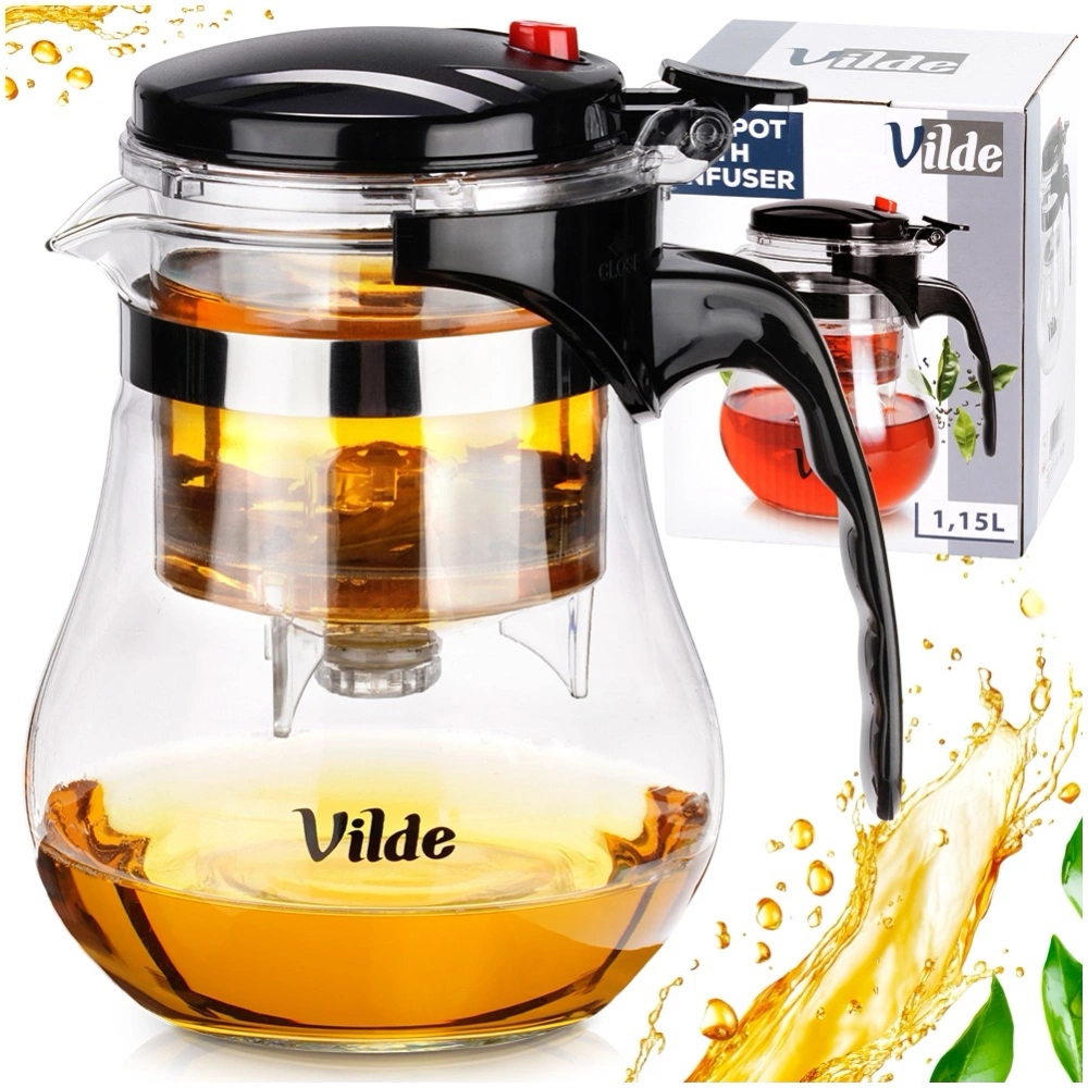 Szklany dzbanek z zaparzaczem to idealne, kompaktowe rozwiązanie do parzenia herbaty i ziół. Dzbanek posiada unikalnym systemem spustowym, który pozwala kontrolować moc esencji i od razu parzyć kolejną porcję. Dzięki temu systemowi oraz odporności na skrajne temperatury dzbanek ten jest wyjątkowo wygodny i uniwersalny w codziennym użytkowaniu. Oryginalny produkt marki Vilde. Wyprodukowano zgodnie z europejskimi standardami.