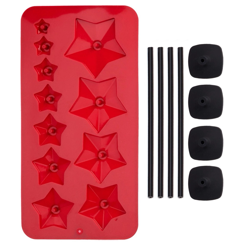 - 9-elementowy zestaw do przygotowywania domowych czekoladek w kształcie choinki. W zestawie: silikonowa forma, 4 patyczki oraz 4 silikonowe podstawki.