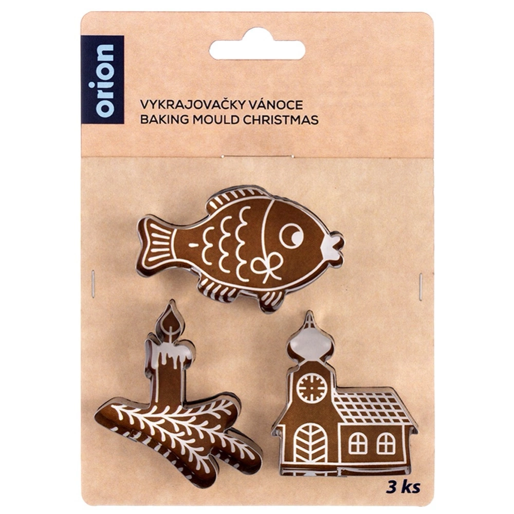 Zestaw trzech wykrawaczy do ciastek w świątecznych wzorach. Niezastąpione w kuchni, przydatne dla miłośników pieczenia. Dzięki nim przygotujemy pierniczki i ciastka o wyjątkowym wzorze. Wykrawacz pozwoli stworzyć również mini kanapki w oryginalnym kształcie lub ozdoby z masy cukrowej. Oryginalny produkt czeskiej marki Orion. Wyprodukowano zgodnie z europejskimi standardami.