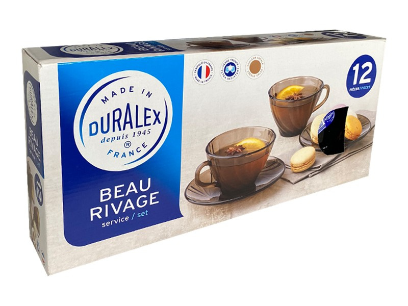 Elegancki zestaw filiżanek Duralex – 12 elementów (6 filiżanek + 6 spodków)
