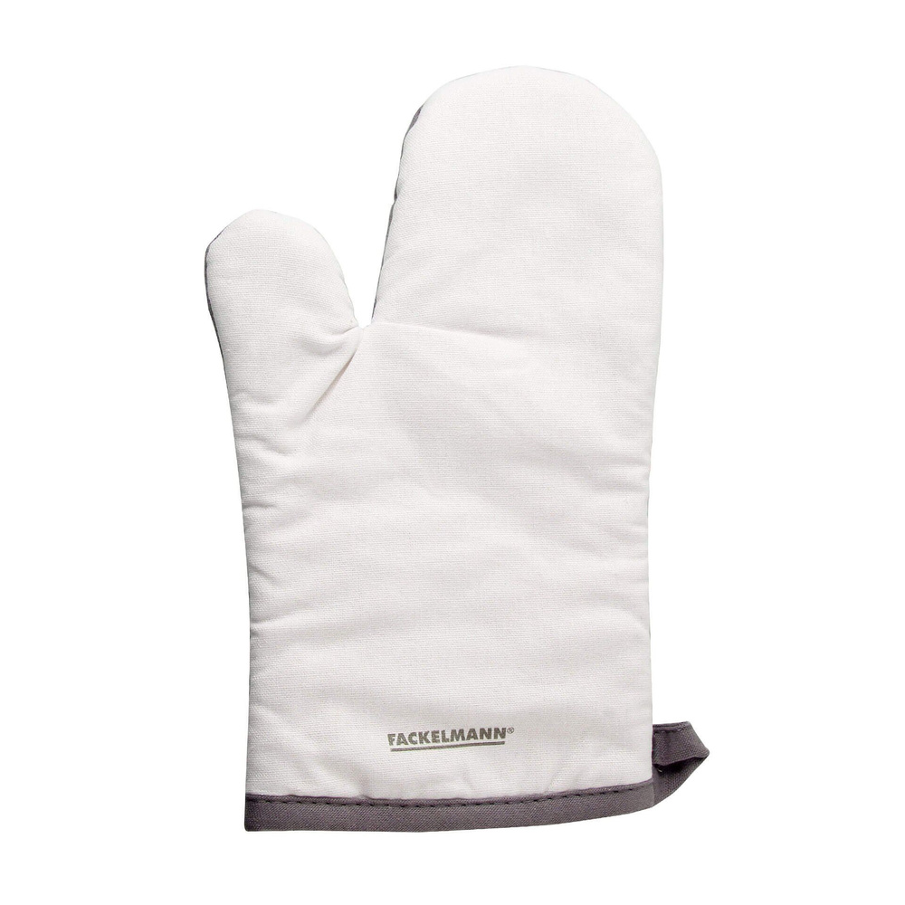 - Zainwestuj w szaro-białą rękawicę kuchenną Fackelmann, która zapewni Ci bezpieczeństwo i komfort podczas gotowania, chroniąc Twoje dłonie przed gorącem, a dzięki uniwersalnemu rozmiarowi i możliwości prania w pralce, stanie się niezastąpionym pomocnikiem