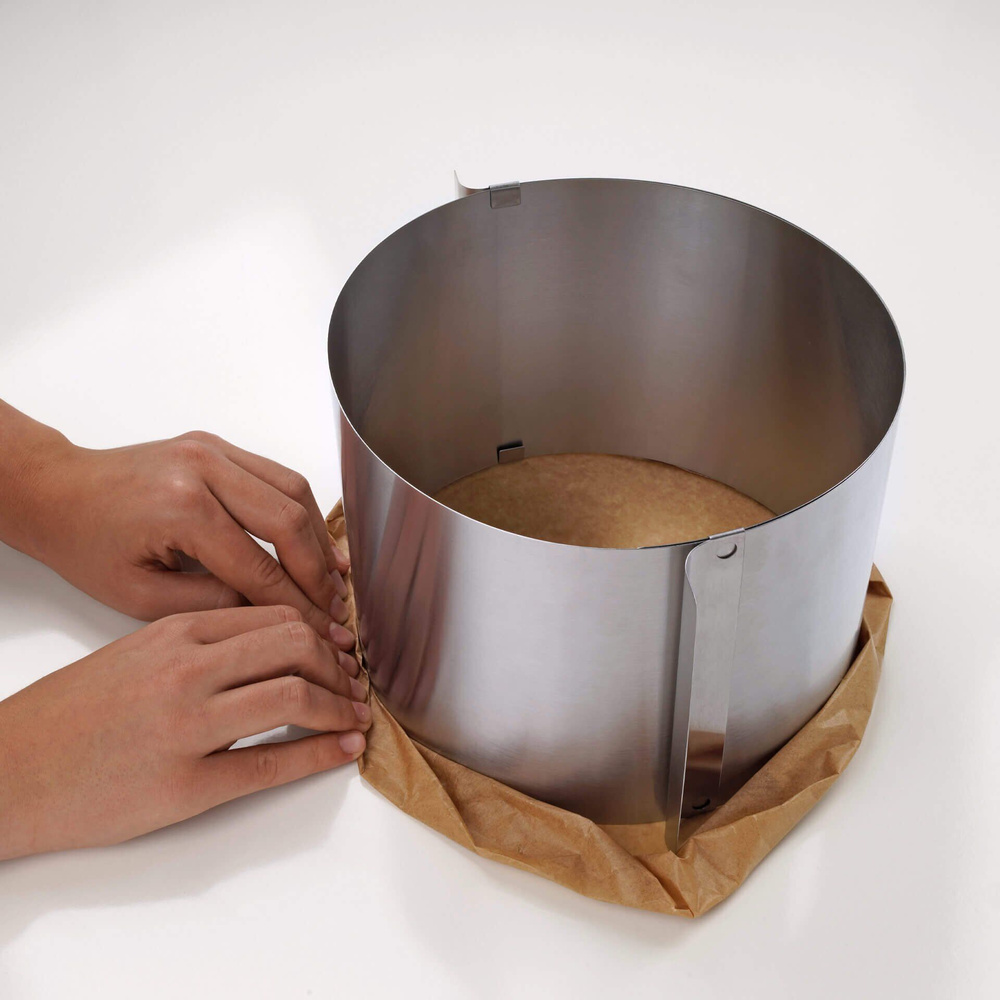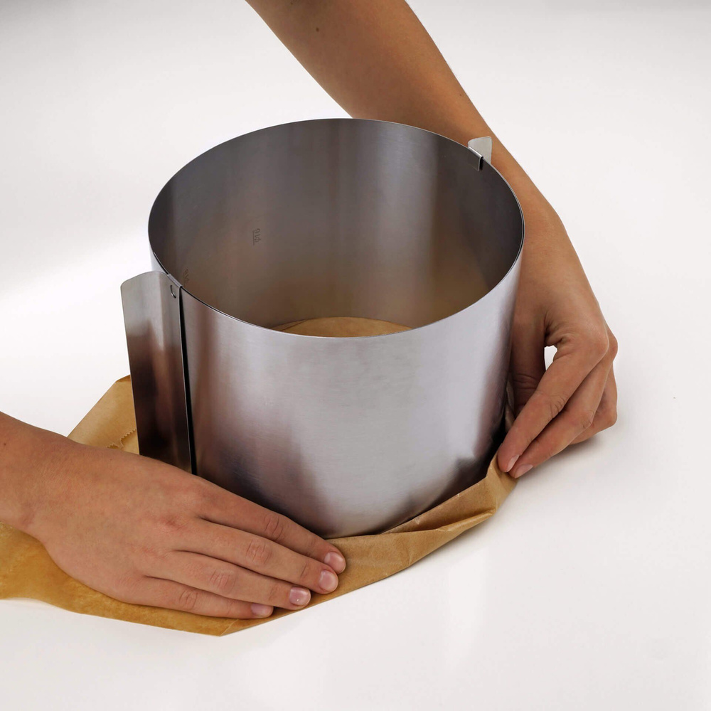 - ✔ Regulowana średnica od 16 do 30 cm, co pozwala na dostosowanie do różnych rozmiarów tortów.