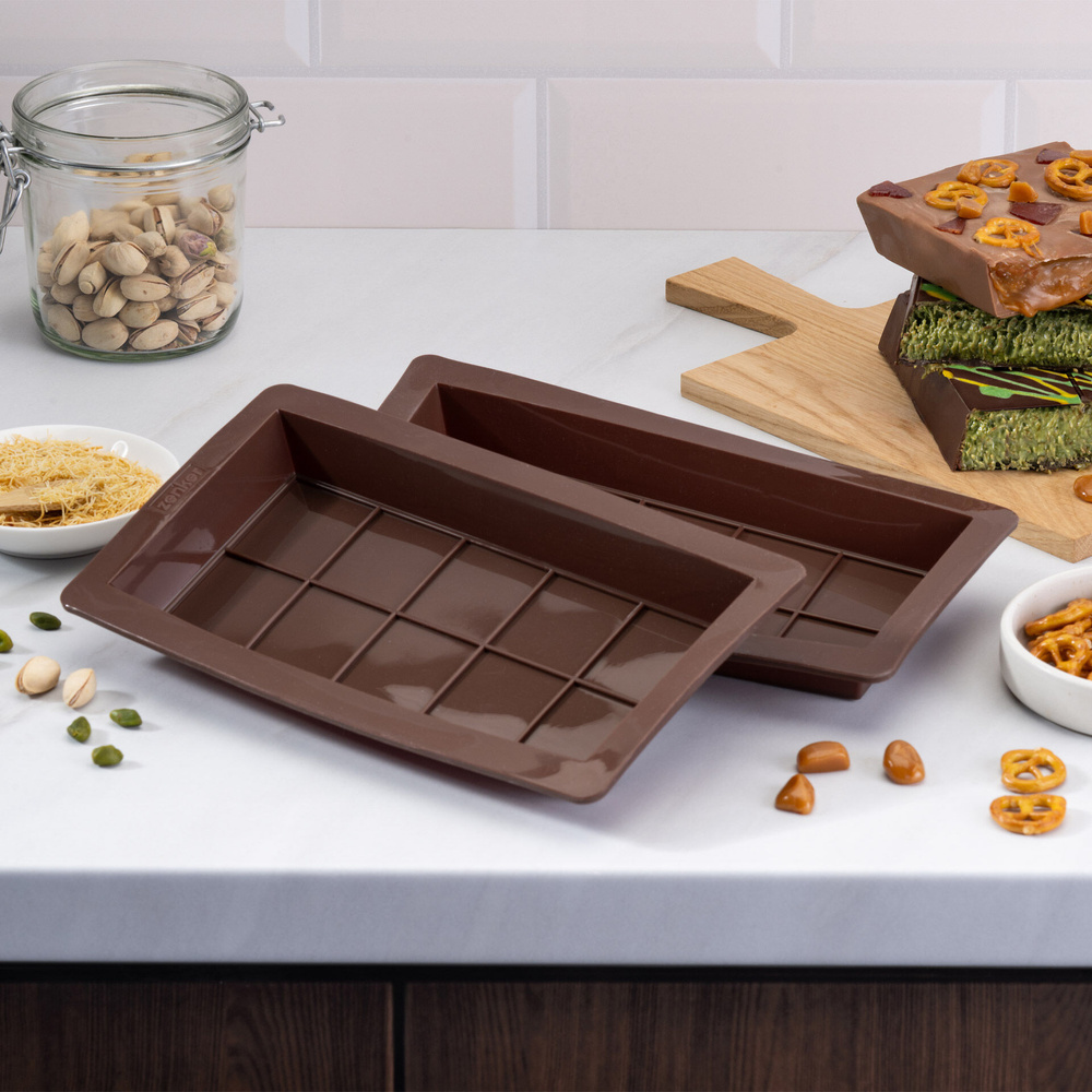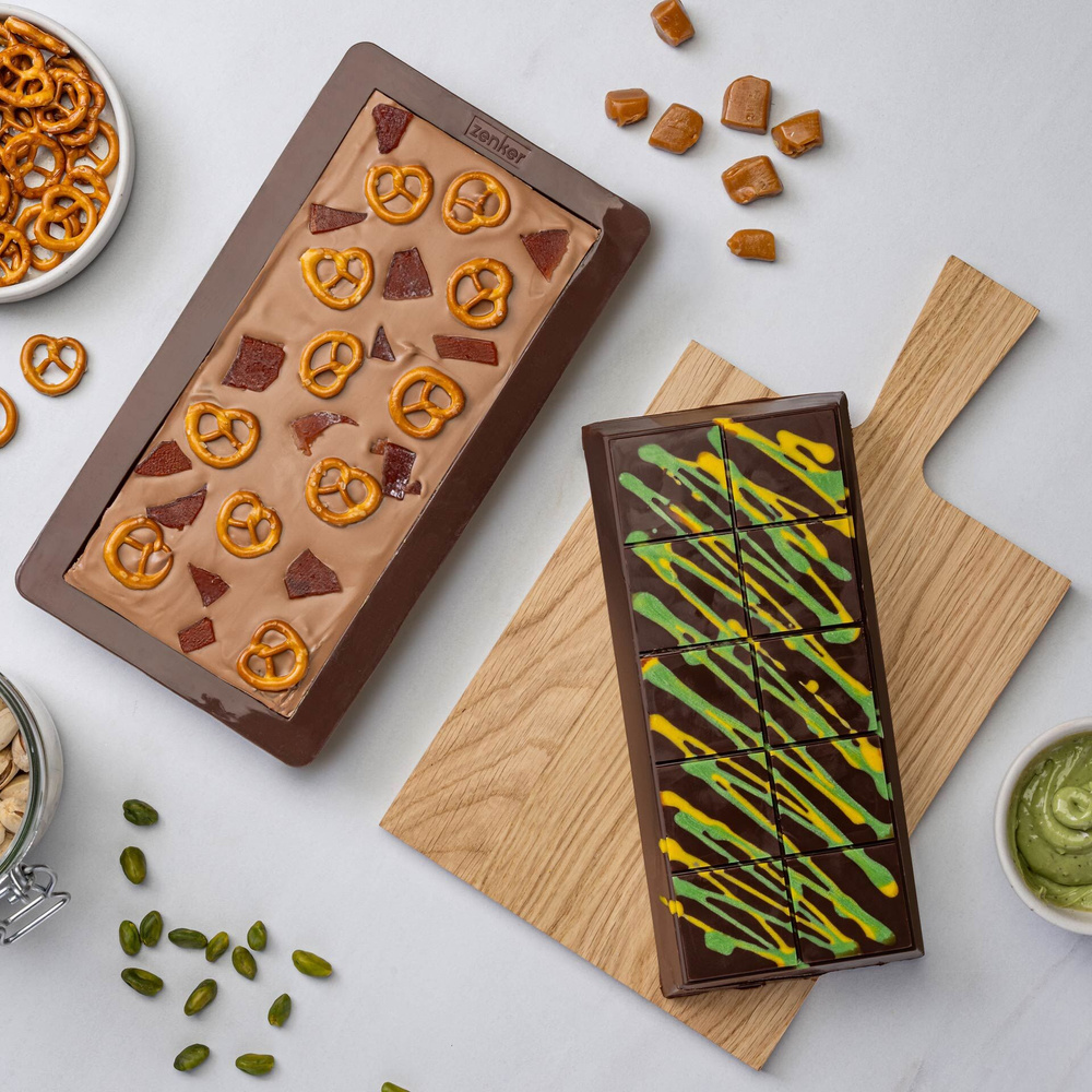 Innowacyjne formy oferują głębokie wgłębienia, które umożliwiają łatwe napełnianie pysznym nadzieniem pistacjowym. Klasyczny wzór kratki z ekstra dużymi kawałkami czekolady sprawia, że gotowe słodkości wyglądają nie tylko apetycznie, ale także zachwycają smakiem. ✔