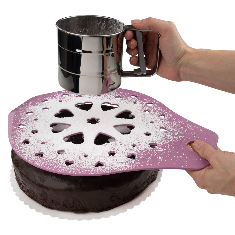 W modnym kolorze Frozen Rose, łopatka o wymiarach 36 x 28 cm pełni również funkcję szablonu do dekoracji. Wystarczy położyć ją na schłodzonym cieście i posypać cukrem pudrem lub cynamonem, aby uzyskać piękne wzory, które zachwycą Twoich gości. 🔥