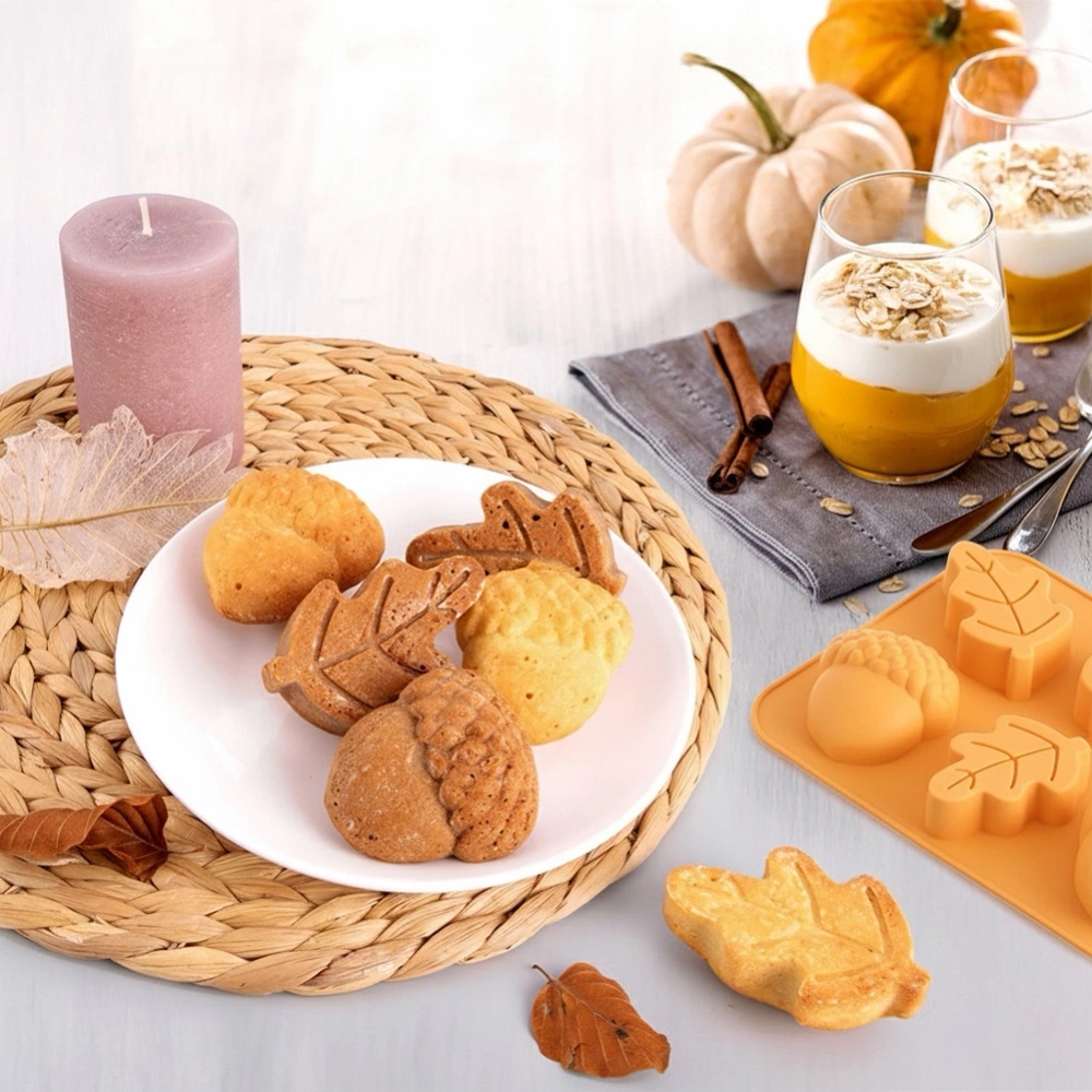 - Silikonowa forma do ciastek z motywami jesiennymi. Umożliwia przygotowanie babeczek, biszkoptów, deserów. Odpowiednia do piekarnika, zamrażarki i zmywarki.