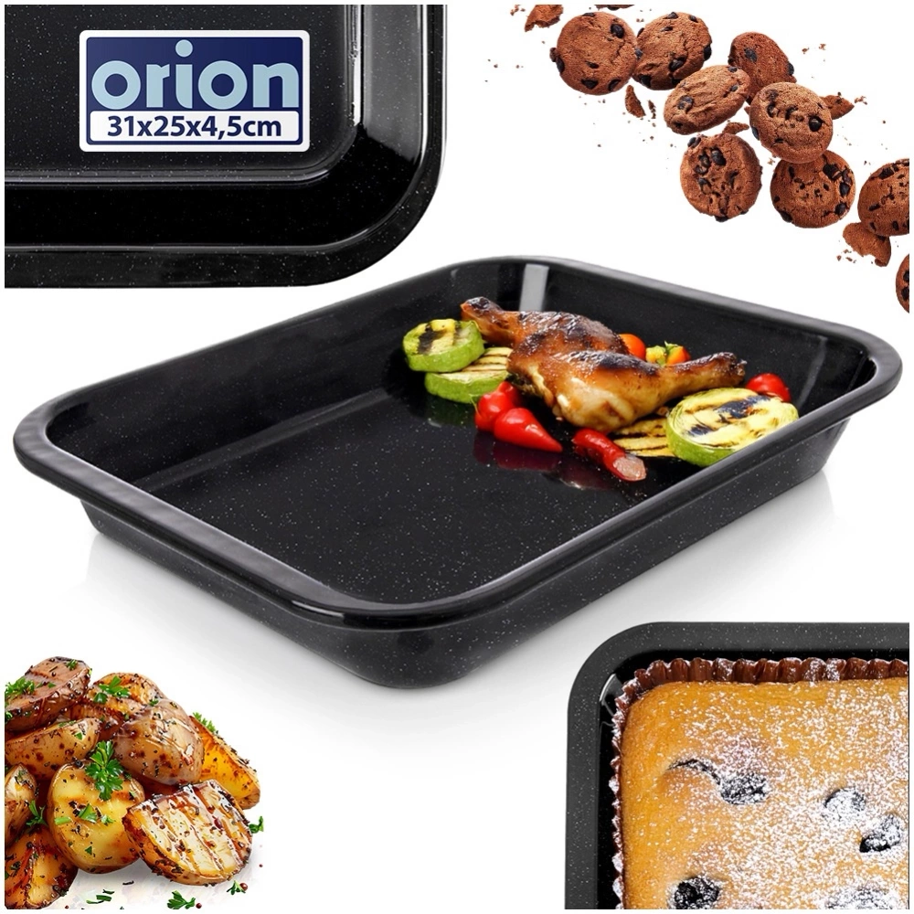 Emaliowana blacha do pieczenia to niezastąpiony element wyposażenia każdej kuchni. Ułatwia przygotowywanie różnorodnych potraw i gwarantuje trwałość oraz łatwe czyszczenie. Idealne do pieczenia słodkich i słonych potraw. Wykonane z najwyższej jakości materiałów, co zapewni komfort użytkowania. Oryginalny produkt czeskiej marki Orion. Wyprodukowano zgodnie z europejskimi standardami.