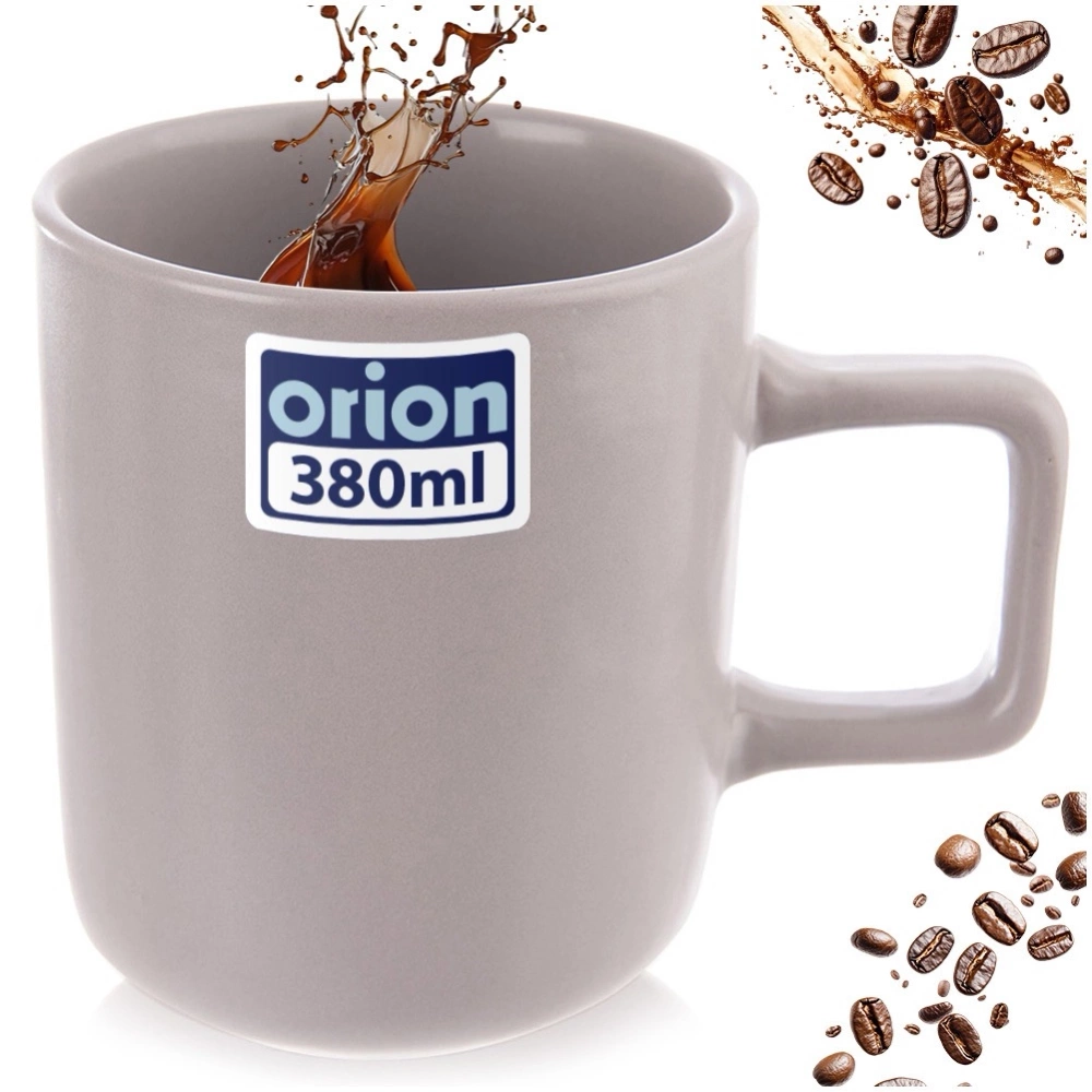 - Kubek 380 ml do picia kawy, herbaty i innych napojów. Kubek jest wykonany z ceramiki w szarym kolorze. Posiada wygodny uchwyt. Nadaje się do zmywarki i mikrofalówki.