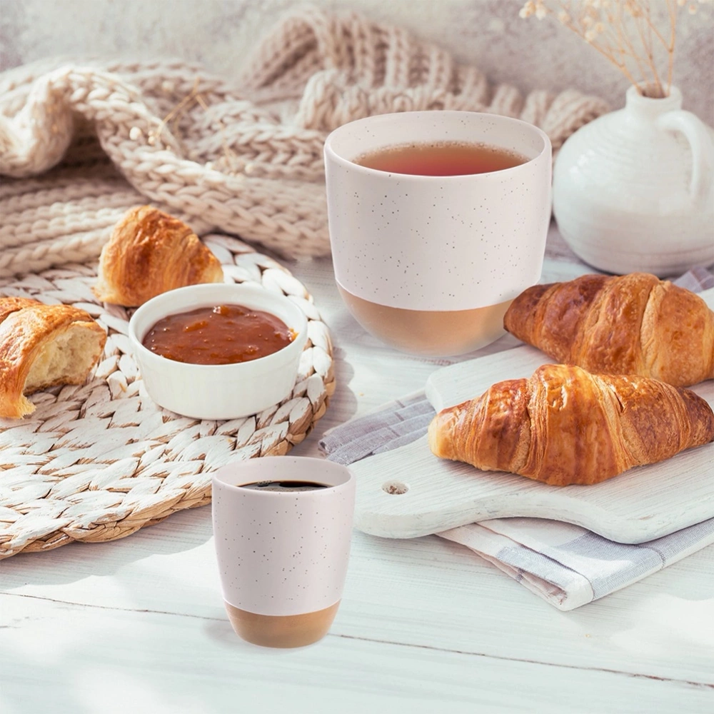 - Wykonany z ceramiki - Wykonany z najwyższej jakości ceramiki w białym kolorze z nakrapianą powierzchnią. Dolna część kubka wykończona kamionką. Kubek będzie pięknie prezentować się na stole.