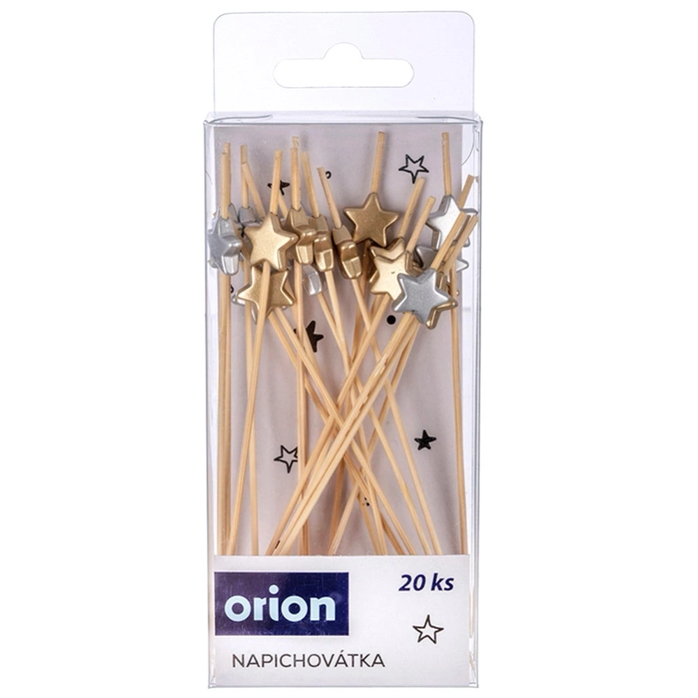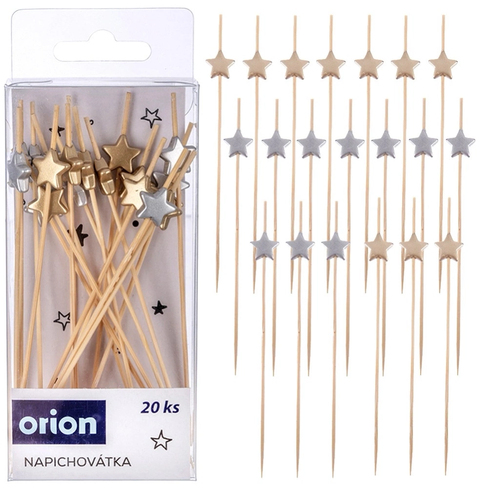 - Zestaw 20 wykałaczek do przekąsek - Zestaw dwudziestu wykałaczek z ozdobami w kształcie gwiazdek, doskonałe do serwowania słonych i słodkich przekąsek podczas przyjęć, spotkań i uroczystości. Każda wykałaczka ma długość 12 cm.