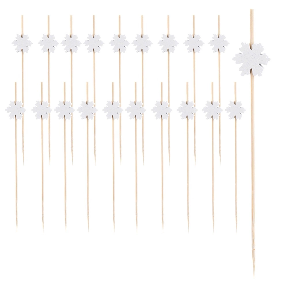 - Zestaw 20 wykałaczek do przekąsek o długości 12 cm z ozdobami w kształcie płatków śniegu. Idealne do serwowania koreczków, serów, owoców i muffinek.