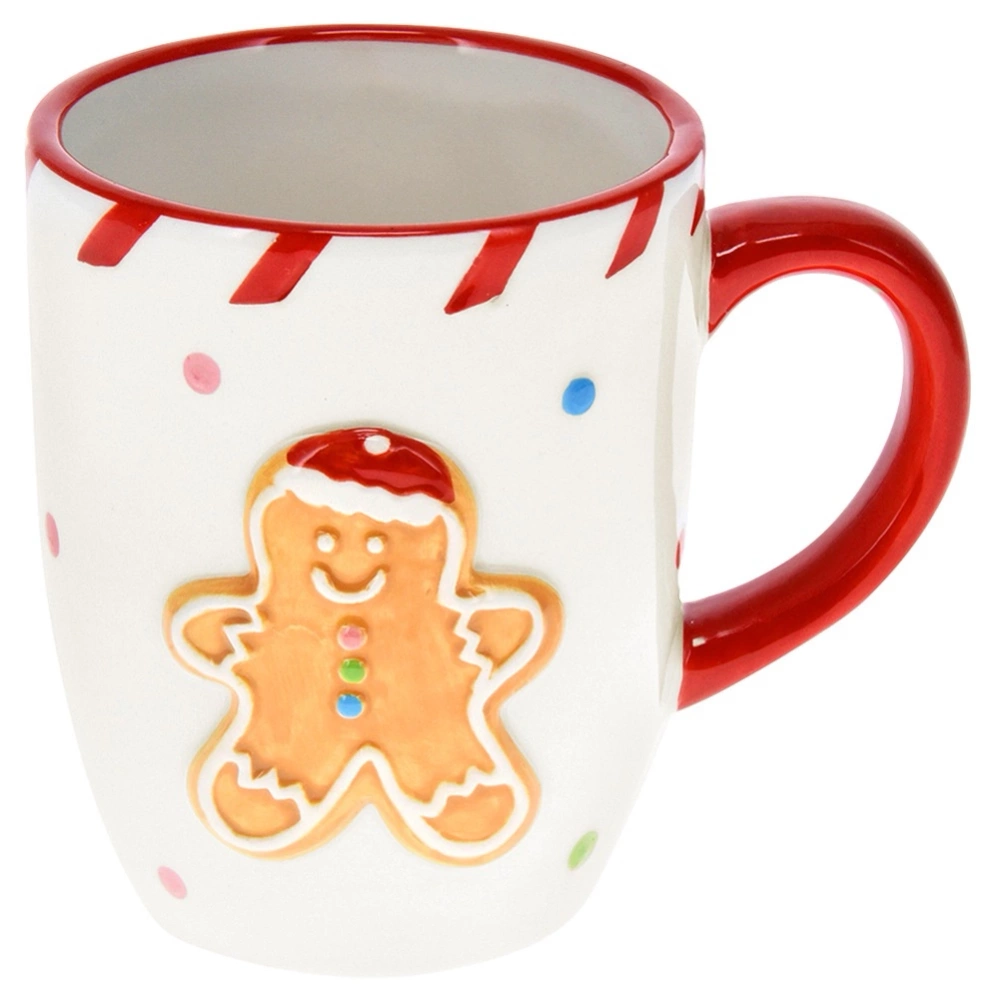 - Kubek 330 ml do picia kawy, herbaty i innych napojów. Kubek jest wykonany z białej ceramiki z efektownym wzorem piernikowego ludzika. Posiada wygodny uchwyt.