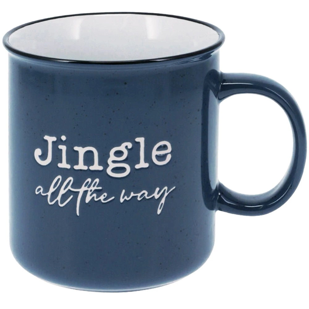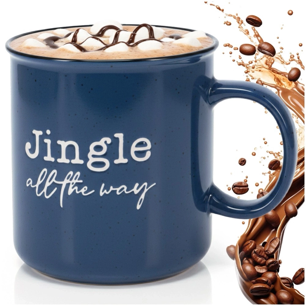 - Duży kubek o pojemności 700 ml, wykonany z kamionki w granatowym kolorze ze świątecznym napisem. Kubek nadaje się do zmywarki oraz mikrofalówki.