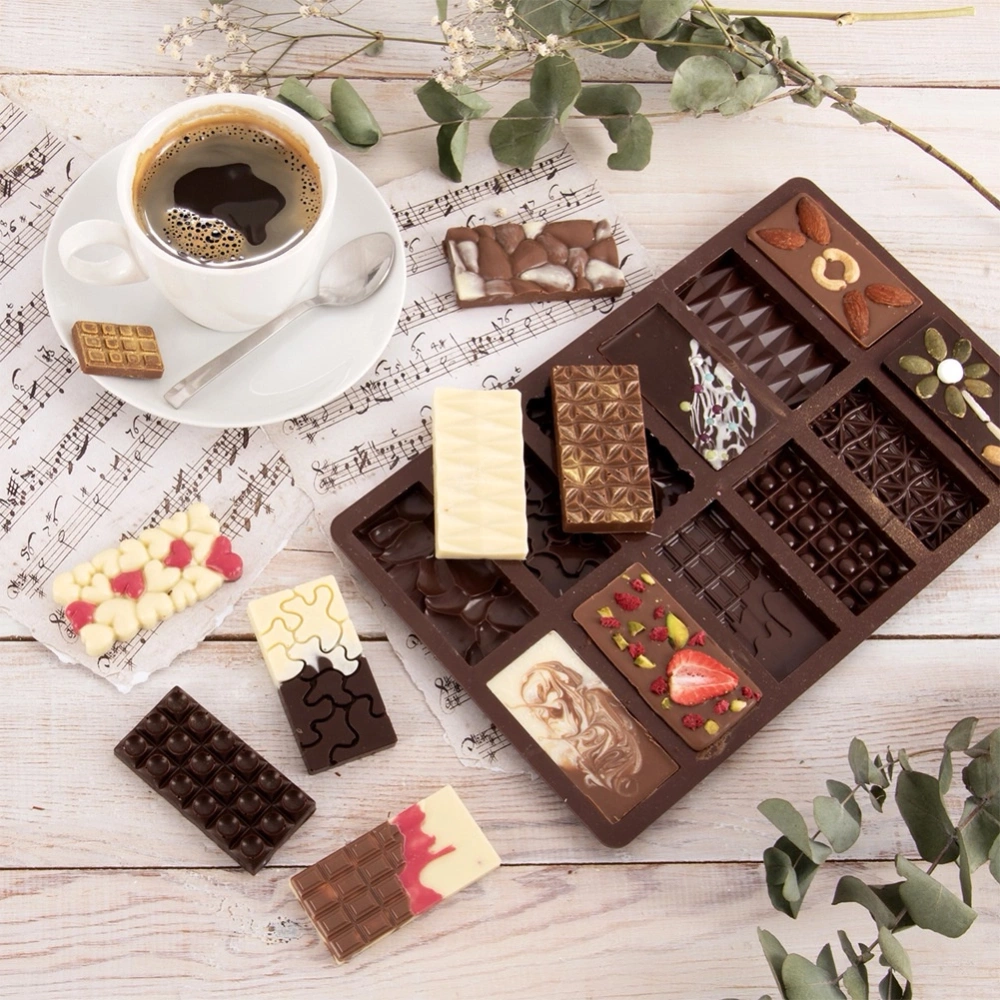 - Silikonowa forma do przygotowania tabliczek czekolady. Umożliwia przygotowanie pięciu dwunastu mini tabliczek czekolady o różnych strukturach.