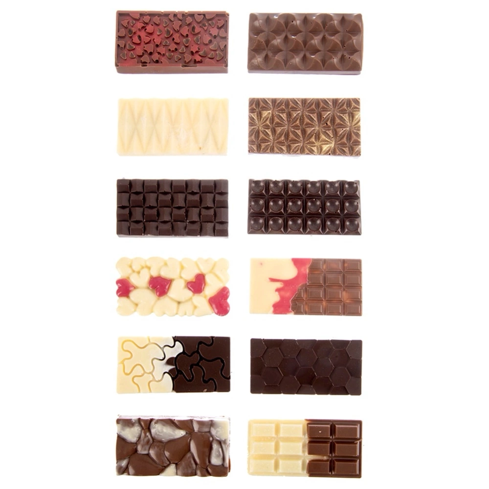 - Różne wzory tabliczek czekolady - Forma posiada 12 miejsc do stworzenia ręcznie tabliczek czekolady o różnych fakturach, co pozwala przygotować czekolady o zróżnicowanym wyglądzie – gładkie, z serduszkami, geometrycznymi i ozdobnymi tłoczeniami. Dzięki temu każda tabliczka prezentuje się wyjątkowo i efektownie. Każda tabliczka czekolady ma wymiary 7 x 3,5 x 0,5 cm.