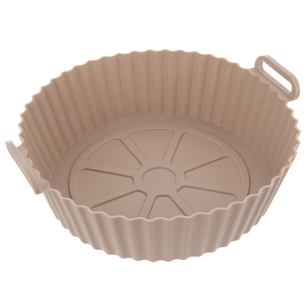 - Wielorazowy wkład do frytkownicy Air Fryer. Wykonany z silikonu w kolorze beżowym. Użyty silikon jest nieprzywierający. Odporny na wysokie temperatury.