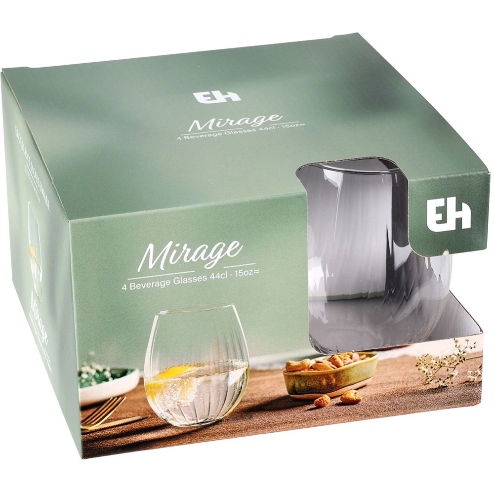 - Zestaw czterech szklanek o pojemności 400 ml. Wykonane ze szkła. Idealnie nadają się do wody, lemoniady, drinków, soków a także whisky.