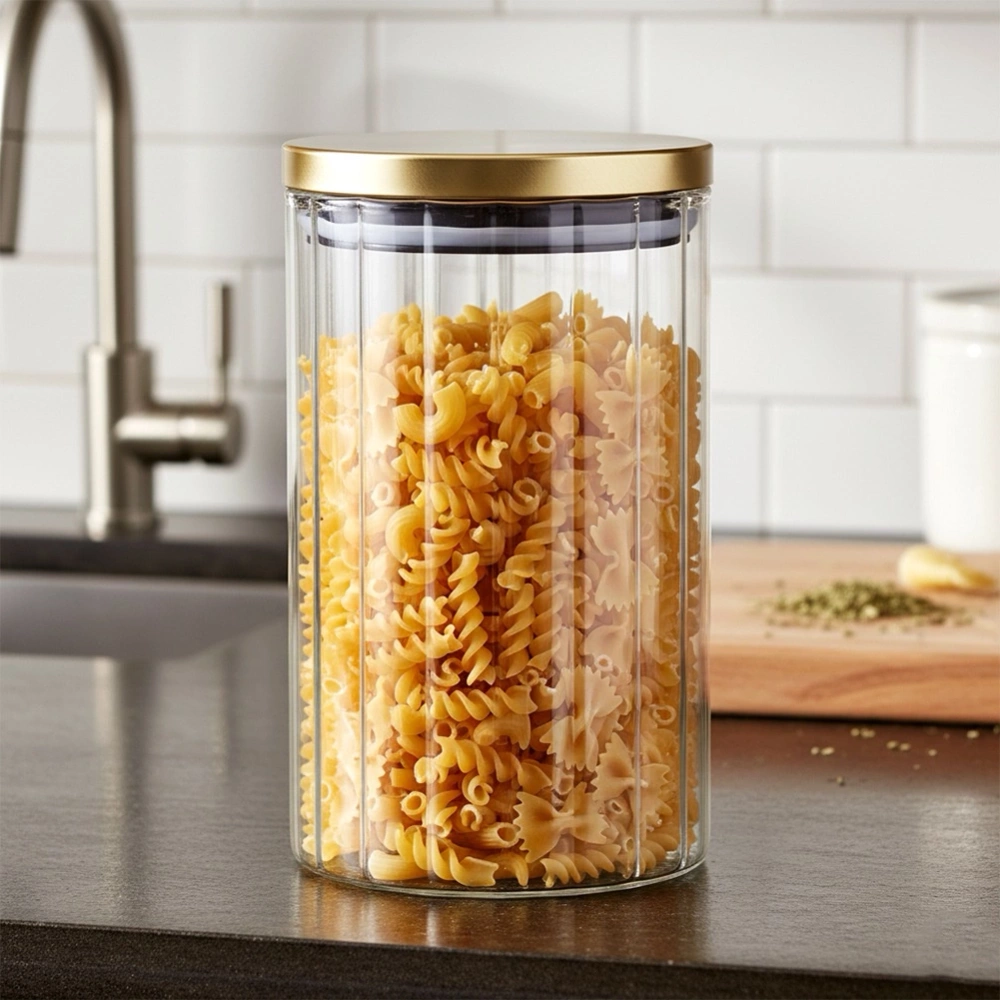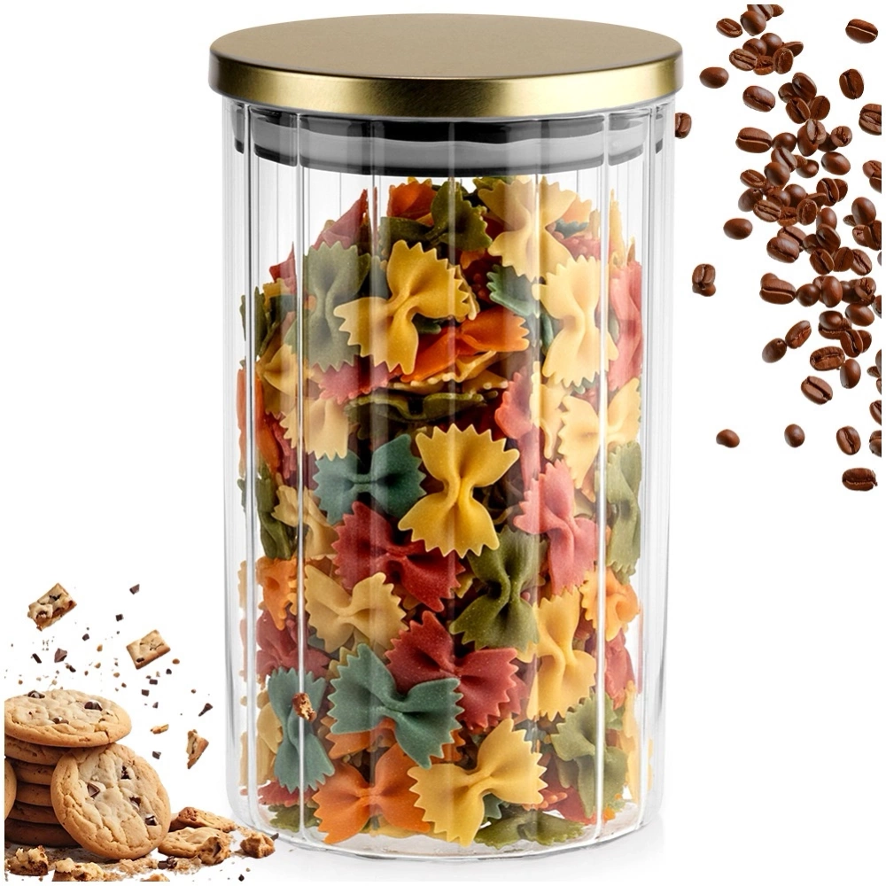 - Pojemnik szklany ze złotą pokrywką. Idealny do przechowywania różnych produktów spożywczych. Szczelny dzięki silikonowej uszczelce. Nadaje się do zmywarki.