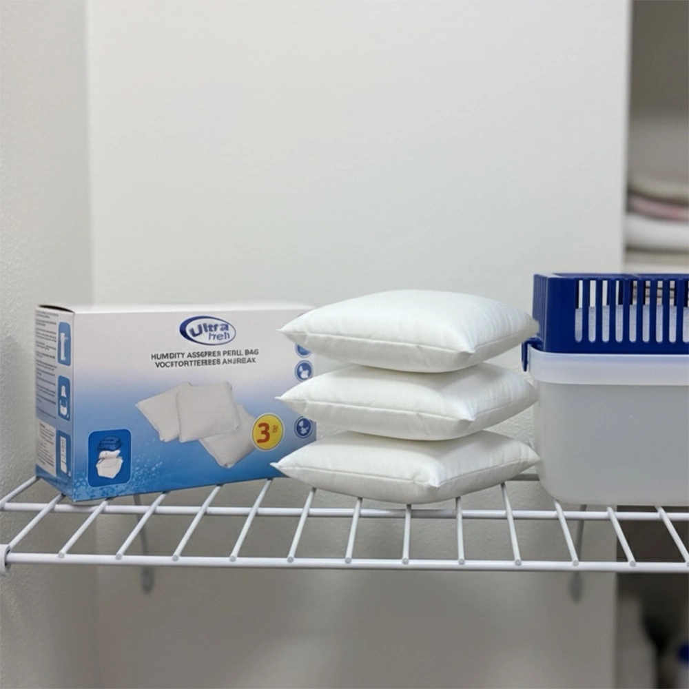 - Zestaw trzech granulowanych wkładów do pochłaniaczy wilgoci 400 g, które skutecznie redukują nadmiar wilgoci i zapobiegają powstawaniu pleśni.