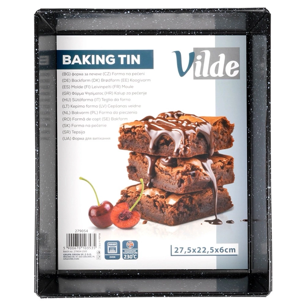 Prostokątna forma do pieczenia ciast, przygotowania deserów, a także wytrawnych potraw takich jak zapiekanki itp. Niezbędna w każdym domu. Wykonana z najwyższej jakości materiałów, co zapewni komfort użytkowania. Bezpieczna dla zdrowia i neutralna dla żywności. Oryginalny produkt marki Vilde. Wyprodukowano zgodnie z europejskimi standardami.